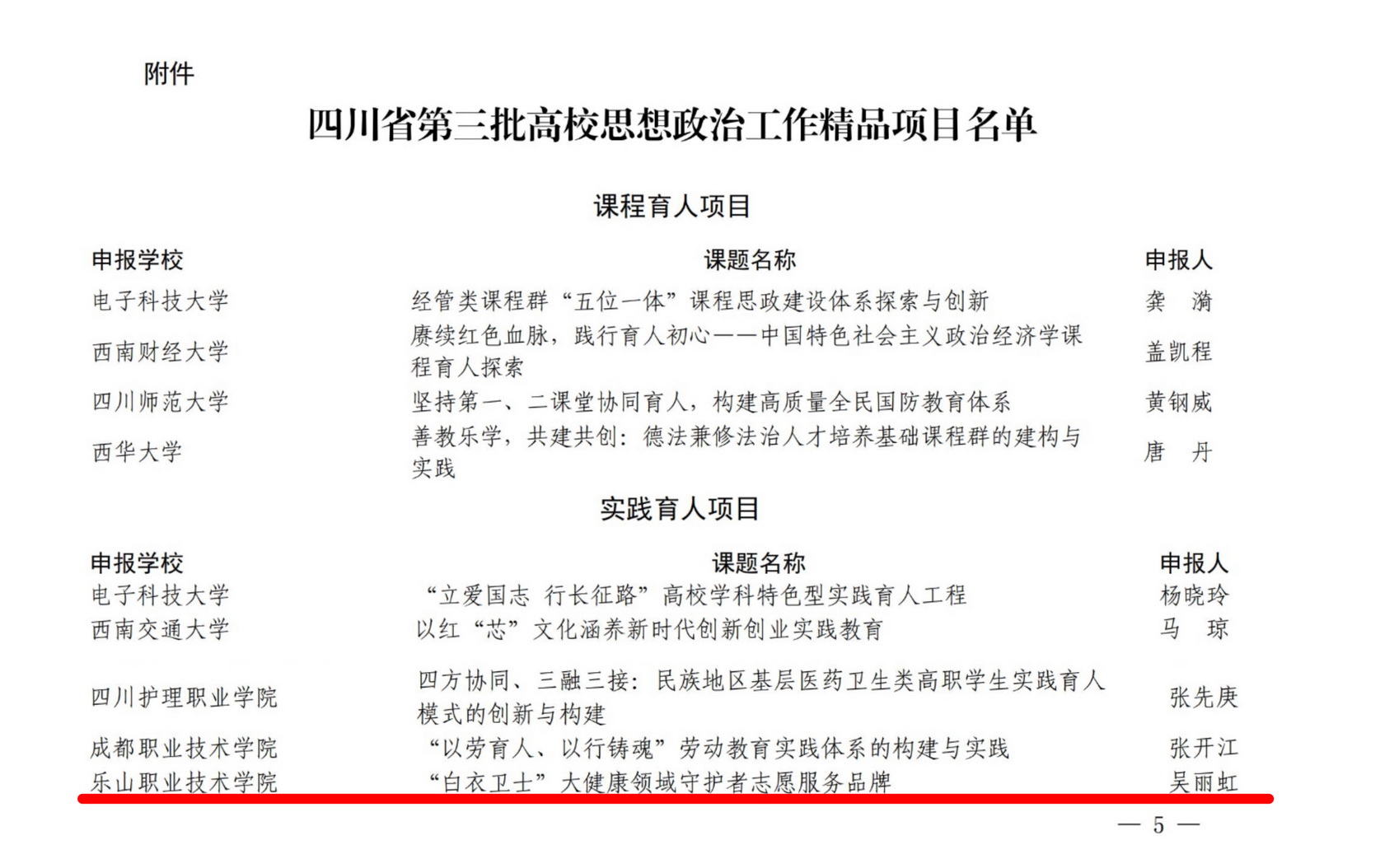 近日,伟德官网护理学院“白衣卫士”志愿服务团队,成功入围2023年“投身乡村振兴,助力健康中国”全国大学生暑期社会实践专项活动。该活动由团中央青年发展部指导开展,依托全国医药类高校共青团工作联盟,面向全国医药类高校招募200支团队,一直以来主要针对本、硕医药专业学生,本次作为专科院校能够入选,是四川省医学卫生类专科院校首次入选。