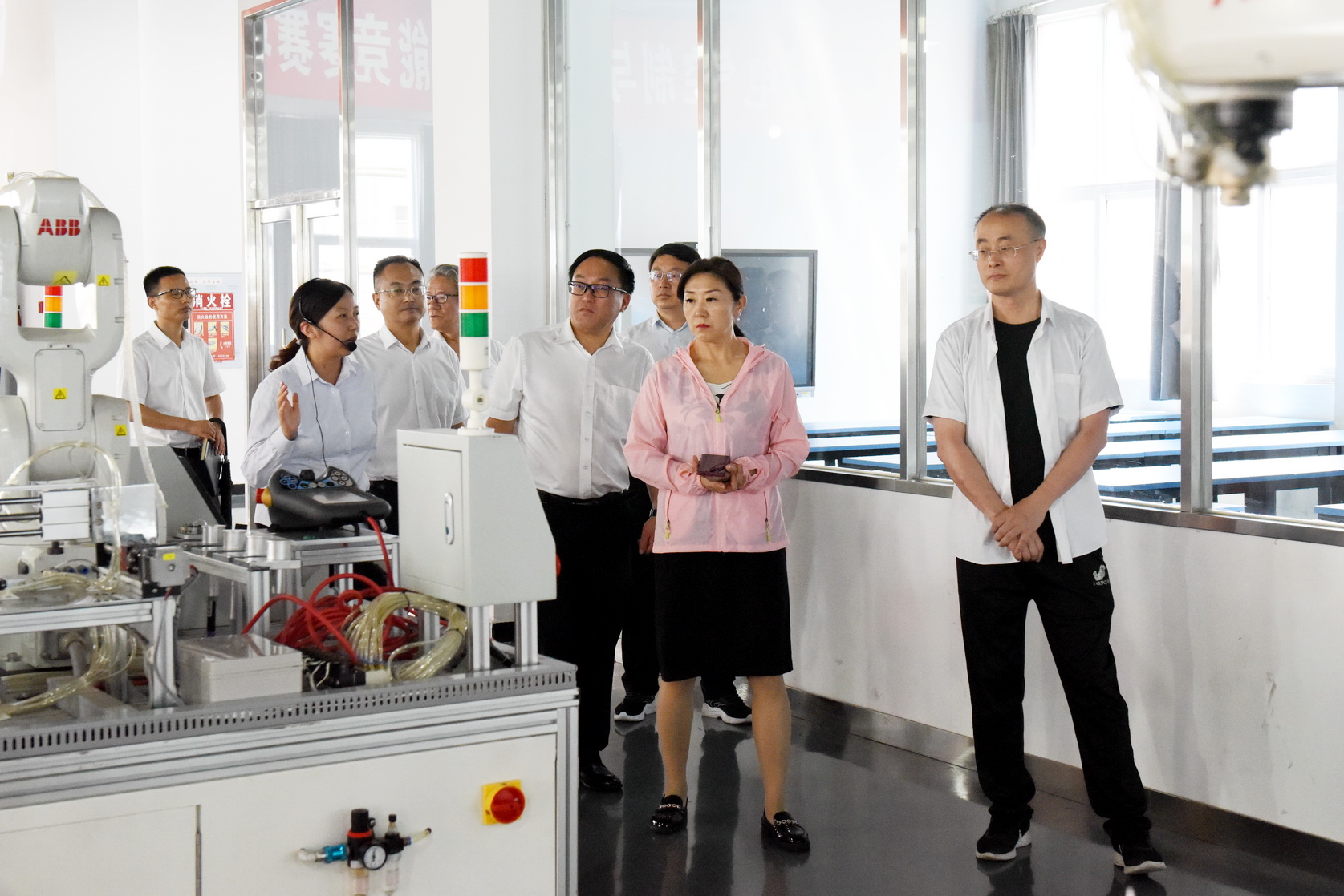 石静一行实地考察了智慧能源中心、工业机器人实训基地和太阳能研究院,就学校智慧能源利用、人才培养、产教融合、校企合作、教学科研、社会服务等情况进行了深入调研。