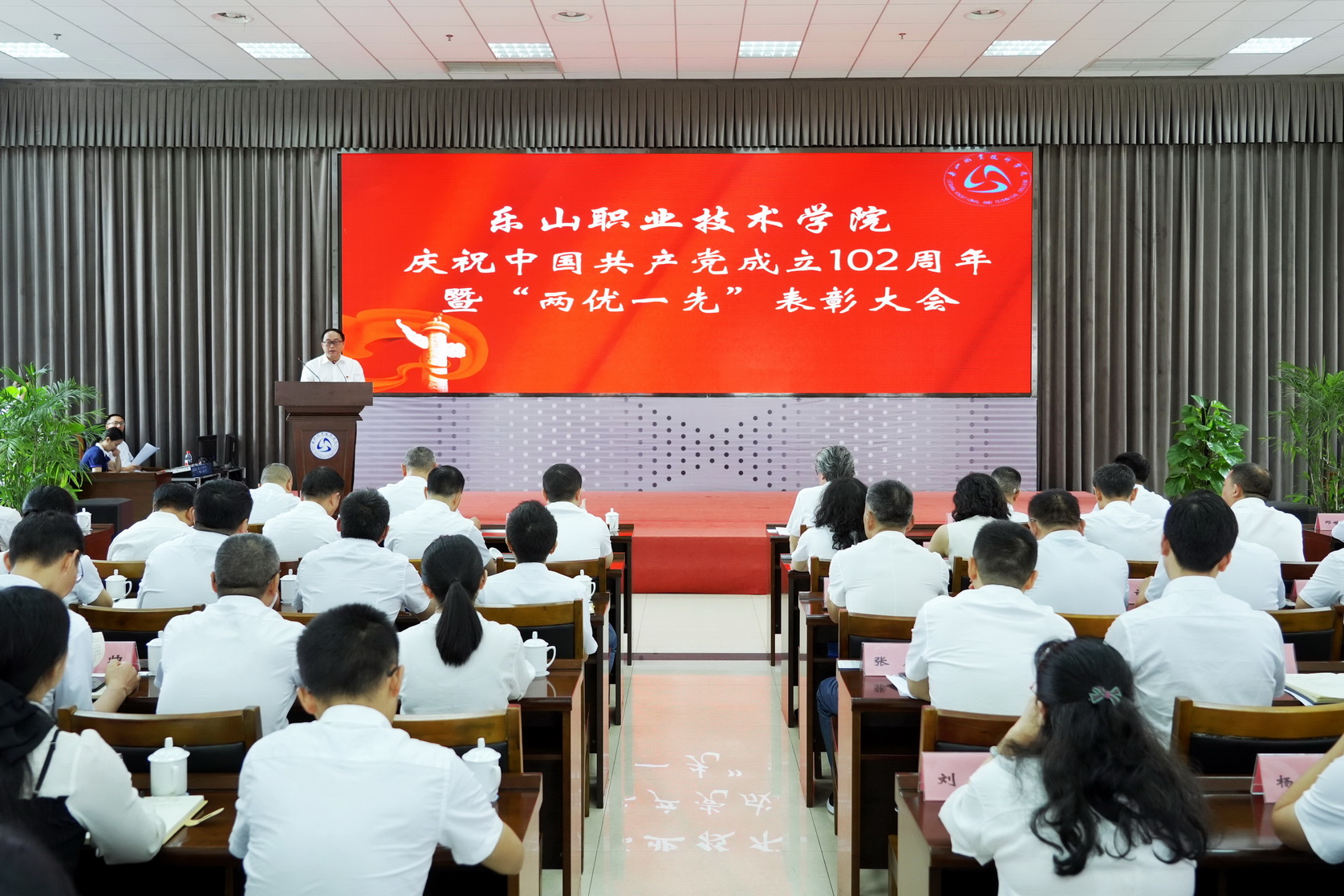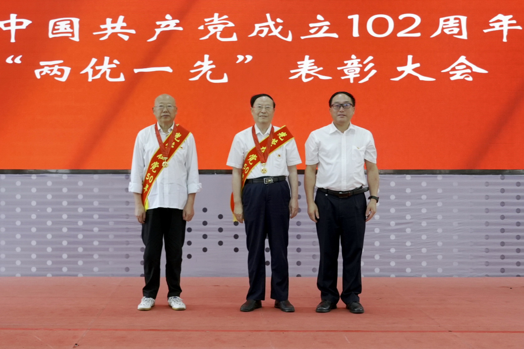 为庆祝中国共产党成立102周年,6月30日上午,学校在学术交流中心召开庆祝中国共产党成立102周年暨“两优一先”表彰大会,对在学校建设发展中涌现出的优秀共产党员、优秀党务工作者和先进基层党组织进行表彰。党员校级领导、中层干部,“两优一先”对象,新、老党员代表等100余人参加大会,非党员中层干部列席。
