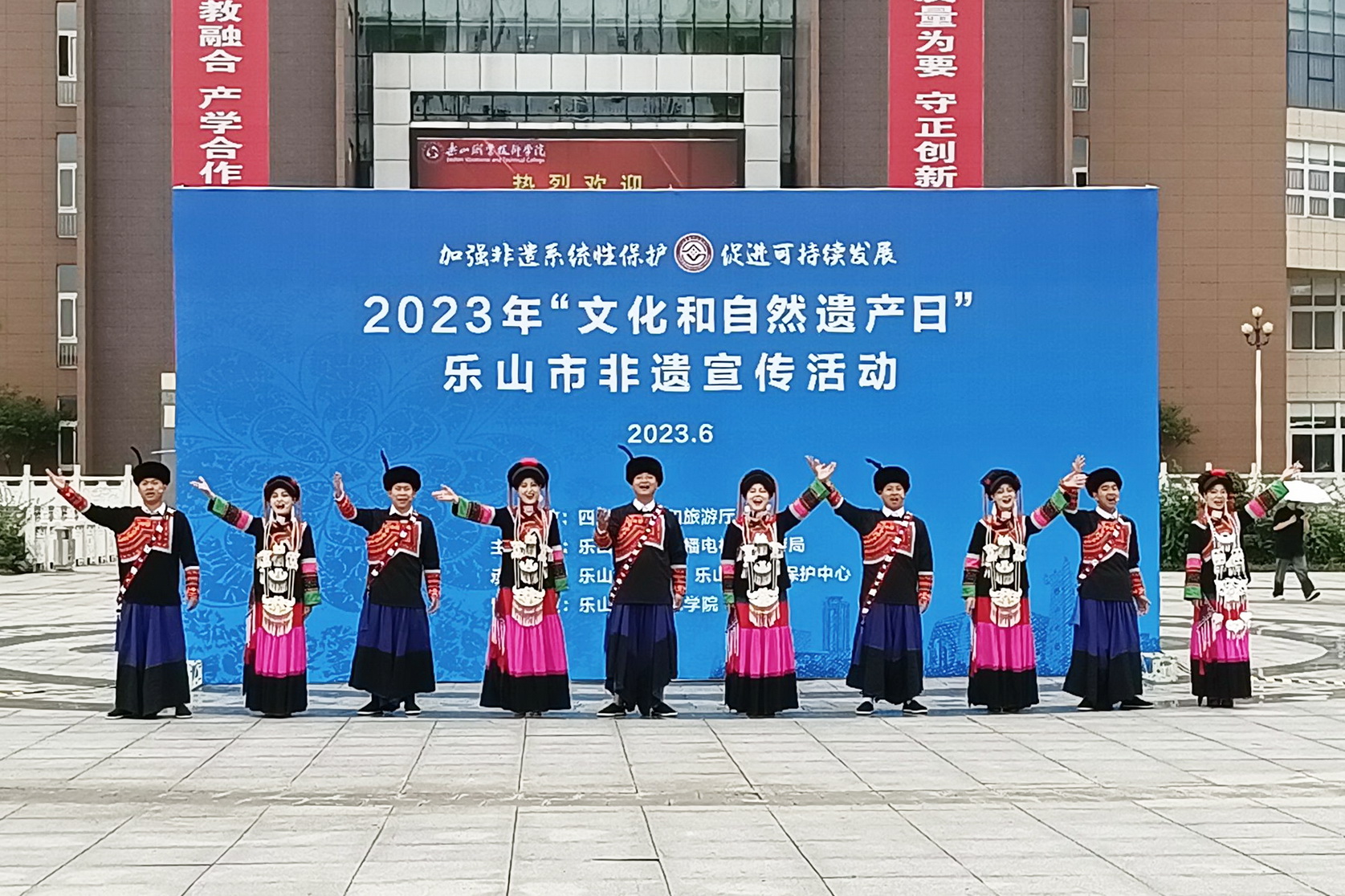 今年6月10日是“文化和自然遗产日”。为进一步提高全社会非物质文化遗产保护意识,传承弘扬中华优秀传统文化,营造非遗保护良好社会氛围。2023年6月2日下午,由四川省文化和旅游厅指导,乐山市文化广播电视和旅游局主办,乐山市文化馆、乐山市非遗保护中心承办,BV伟德官方网站协办的2023年“文化和自然遗产日”乐山市非遗宣传活动在BV伟德官方网站举行。