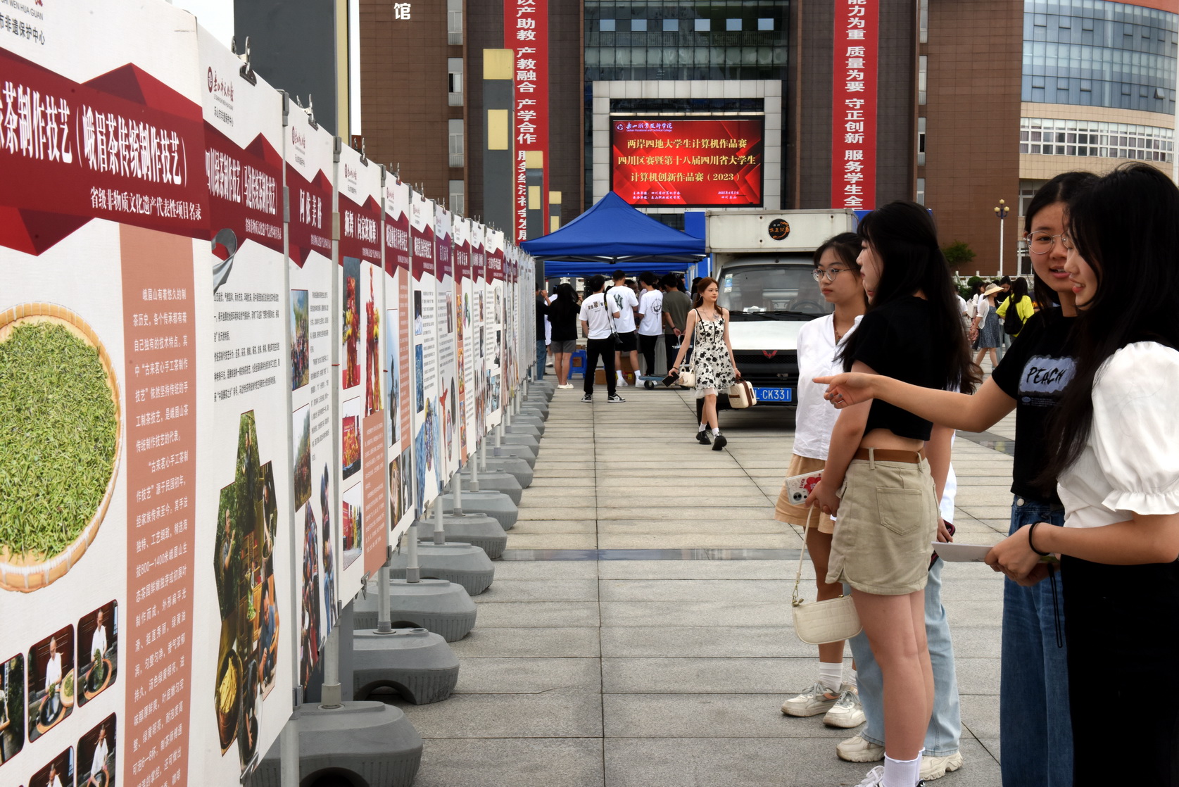 活动发放了《乐山市非物质文化遗产》宣传册,精选了乐山市40个非遗项目,利用展板进行详细的图文展示,同学们积极围观了解、近距离感受乐山非遗魅力。