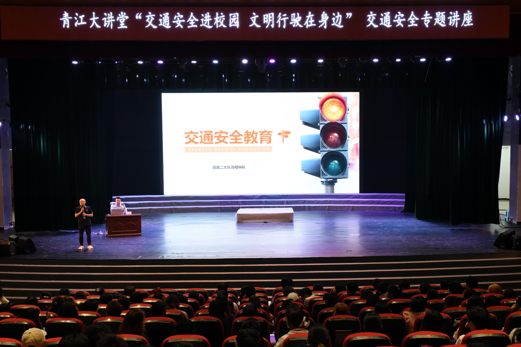 为增强大学生的交通安全意识,增强同学们自我保护能力。2023年5月31日下午,由学生工作部牵头、保卫处协办,在礼堂举办了“青江大讲堂:交通安全进校园 文明行驶在身边”交通安全专题讲座。讲座邀请乐山市公安局交警支队直属二大队苏稽中队吉卡罗批警官主讲,各二级学院专职副书记、专兼职辅导员和1500余名学生代表聆听演讲。