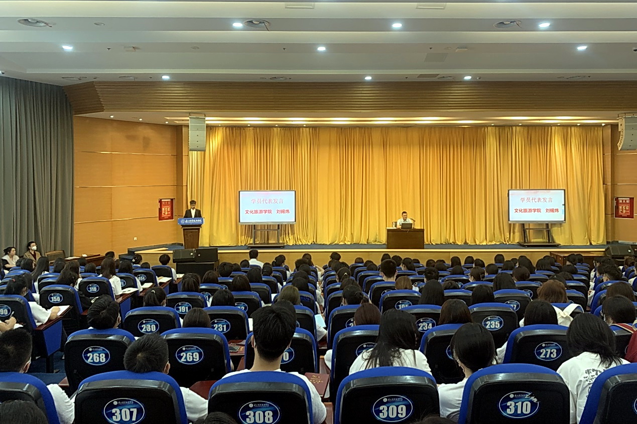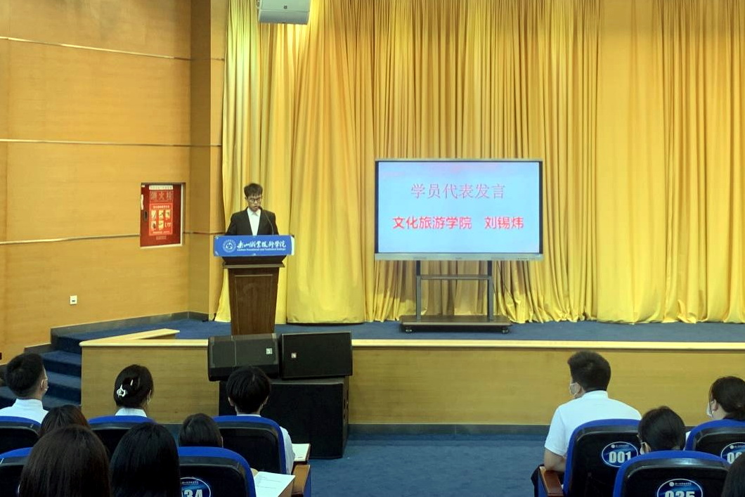 文化旅游学院入党积极分子刘锡炜作为学员代表进行了发言,作出了认真学习、提高认识,端正态度、遵守纪律的承诺。