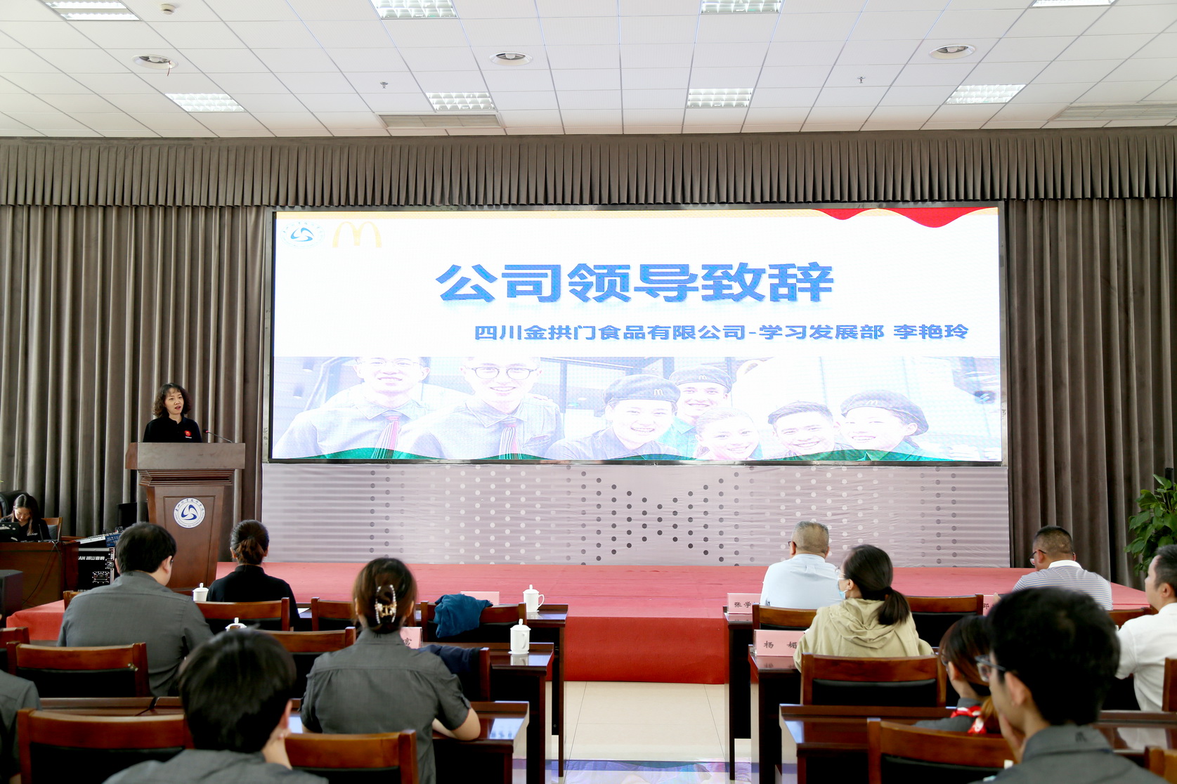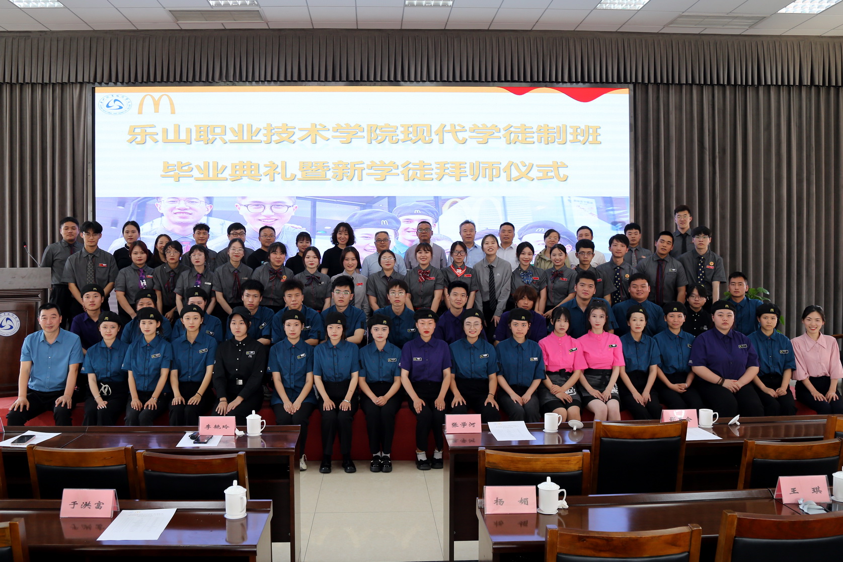 2023年5月23日下午,BV伟德官方网站数字经济与管理学院在学术交流中心3004会议室隆重举行第三届麦当劳现代学徒制班毕业典礼暨新学徒拜师仪式。四川金拱门食品有限公司学习发展部经理李艳玲、运营经理冯之蓓等企业领导和师傅,BV伟德官方网站党委委员、副校长张学河,数字经济与管理学院相关领导及工商企业管理专业现代学徒制班全体师生参加仪式。