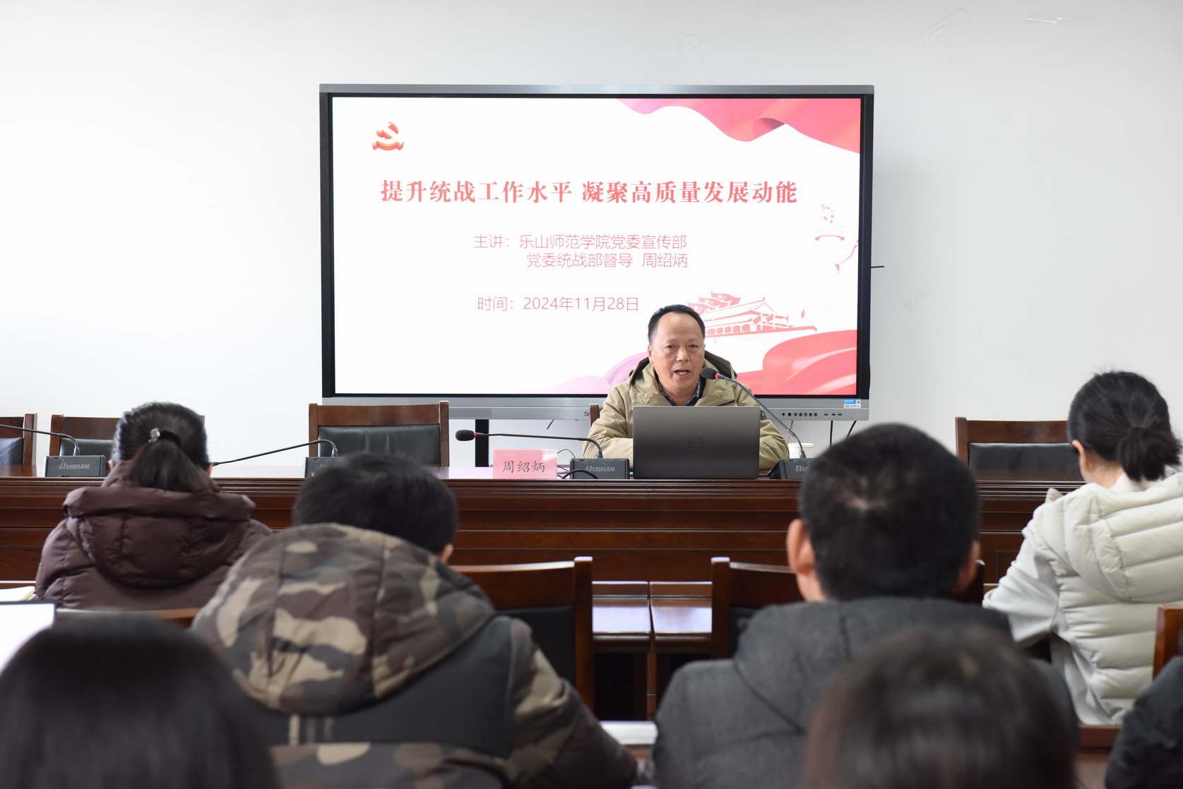11月28日下午,2024年BV伟德官方网站统战工作培训会在401会议室举行,学校党委统战部邀请乐山师范学院统战部督察员周绍炳作专题培训。学校统战工作领导小组成员单位负责人,二级学院统战委员参加培训。