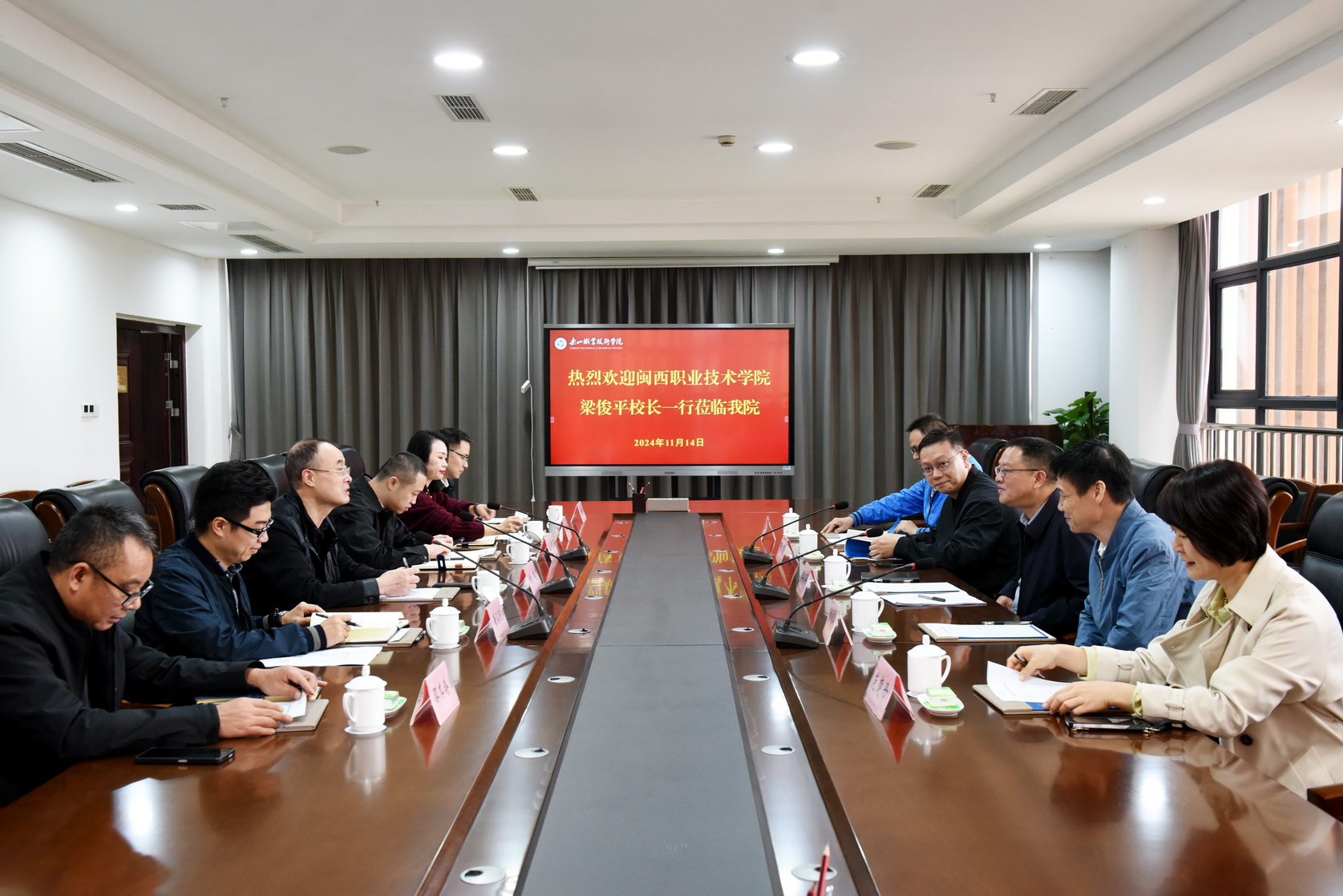 2024年11月14日上午,闽西职业技术学院校长梁俊平一行莅临BV伟德官方网站考察调研。BV伟德官方网站校长刘忠及相关部门负责人陪同考察调研。