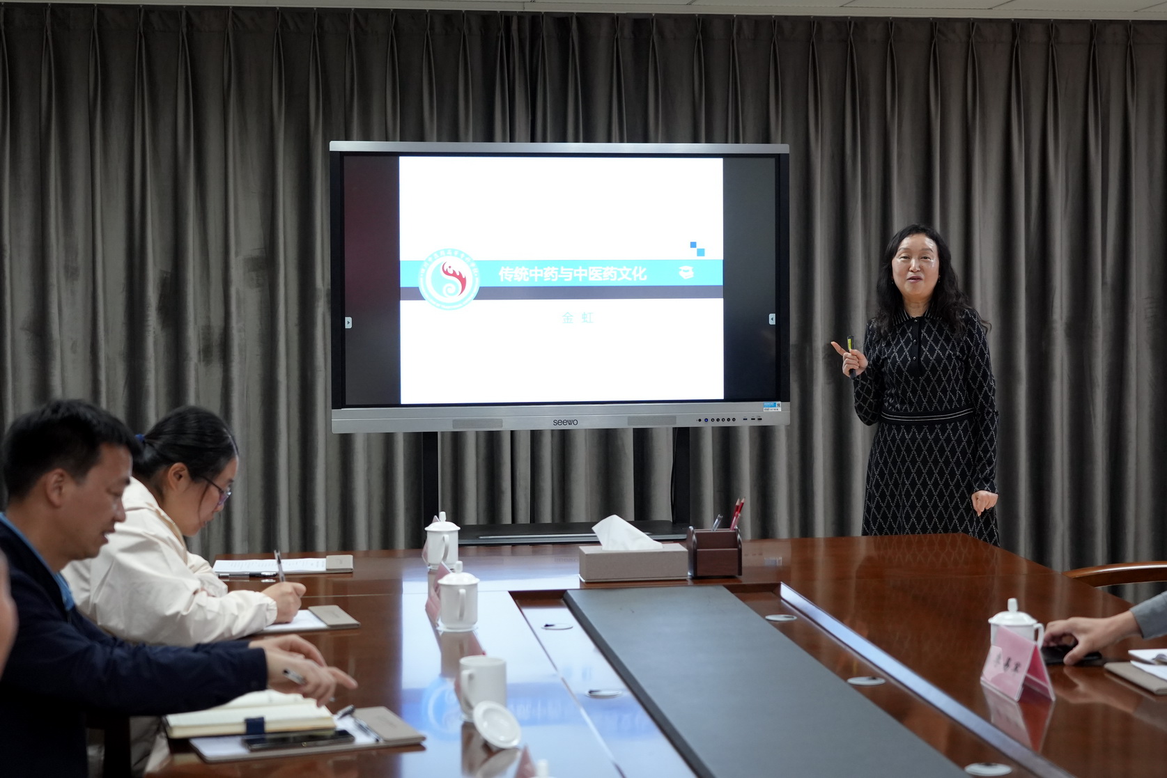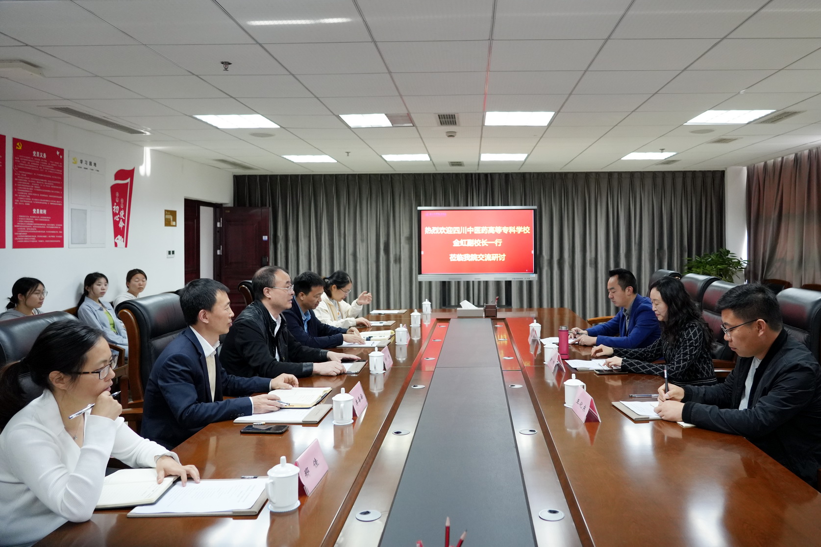 刘忠介绍了学校基本情况,金虹作了“传统中药与医药文化建设”专题讲座,双方就中医药传统文化、中药专业建设及中药专业人才培养进行了深入交流。