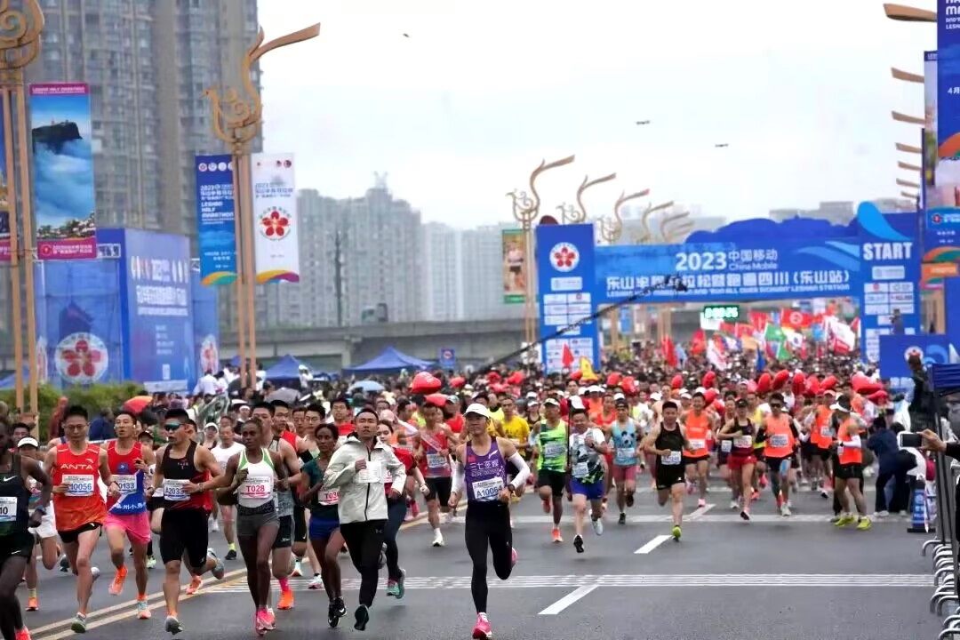 本届赛事共设半程马拉松(21.0975公里)、欢乐跑(约5公里)两个项目,欢乐跑从市中区生态大道大渡河广场起点出发,经生态大道方向2.5公里折返到大渡河广场(终点)。半程马拉松从市中区生态大道大渡河广场起跑后经生态大道上道、下道,途经两个折返点,最终到达沙湾沫若戏剧文创园。