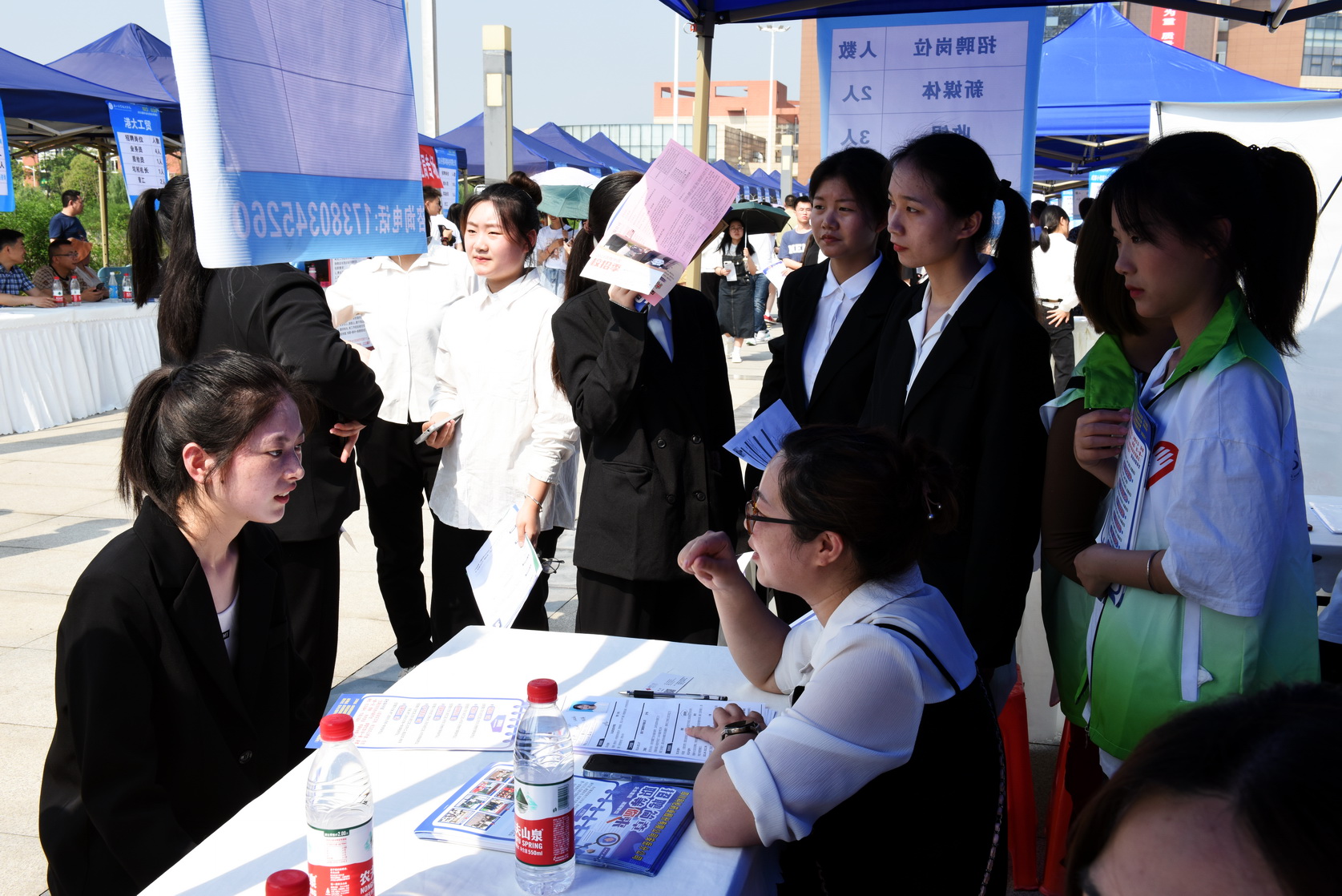 双选会现场气氛热烈,毕业生们踊跃递交简历,与招聘单位积极交流岗位职责、发展前景等。据悉,本场双选会参会企业共261家,其中省外11家,省内255家,乐山本土参会企业45家。主要行业类型包含了医药卫生、旅游、新能源、金融电子、机械机电等,涵盖了我院大多数专业,提供实习和就业岗位近4000个。