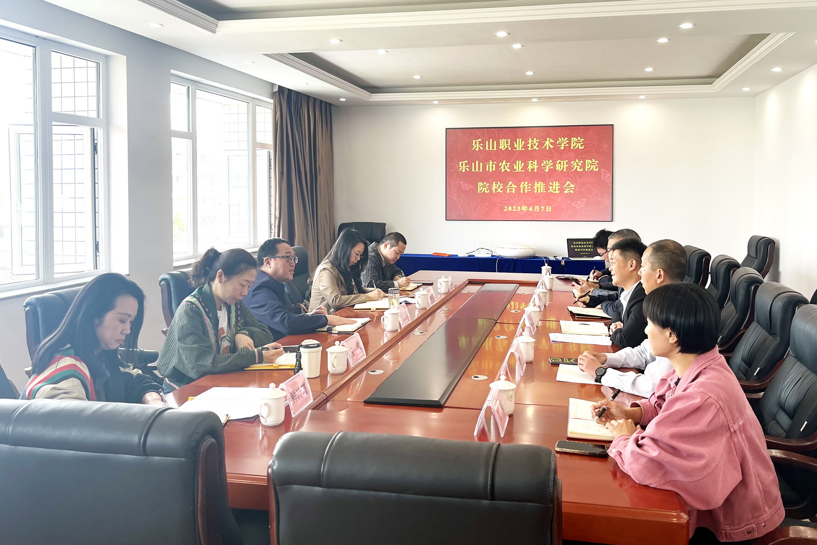 乐山市农业科学研究院院长张志回顾了双方自2022年5月签订战略合作协议以来所取得的突出成绩,希望双方进一步加强交流合作,服务乐山农业现代化建设。成定彬对双方前期合作所取得的成绩表示肯定,希望进一步加深战略合作关系,优势互补,形成科教融合共同体,共同助力乐山农业强市。