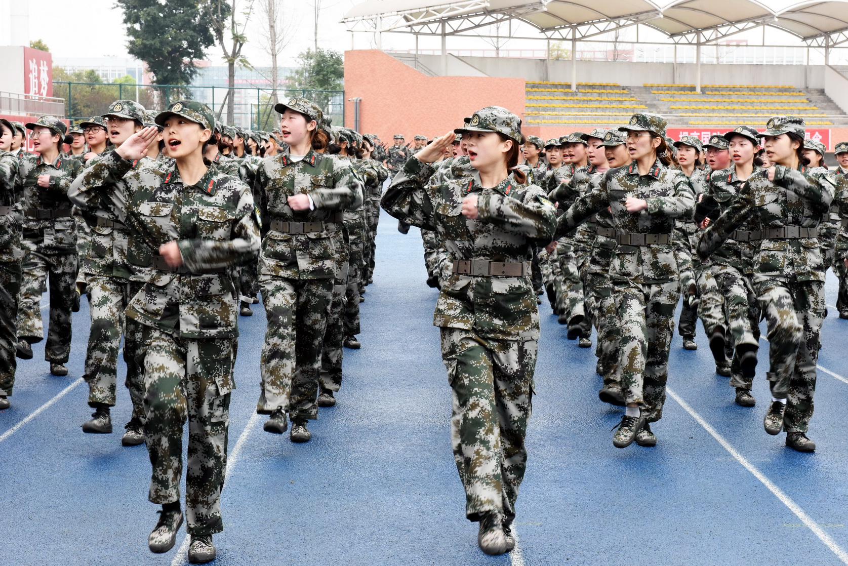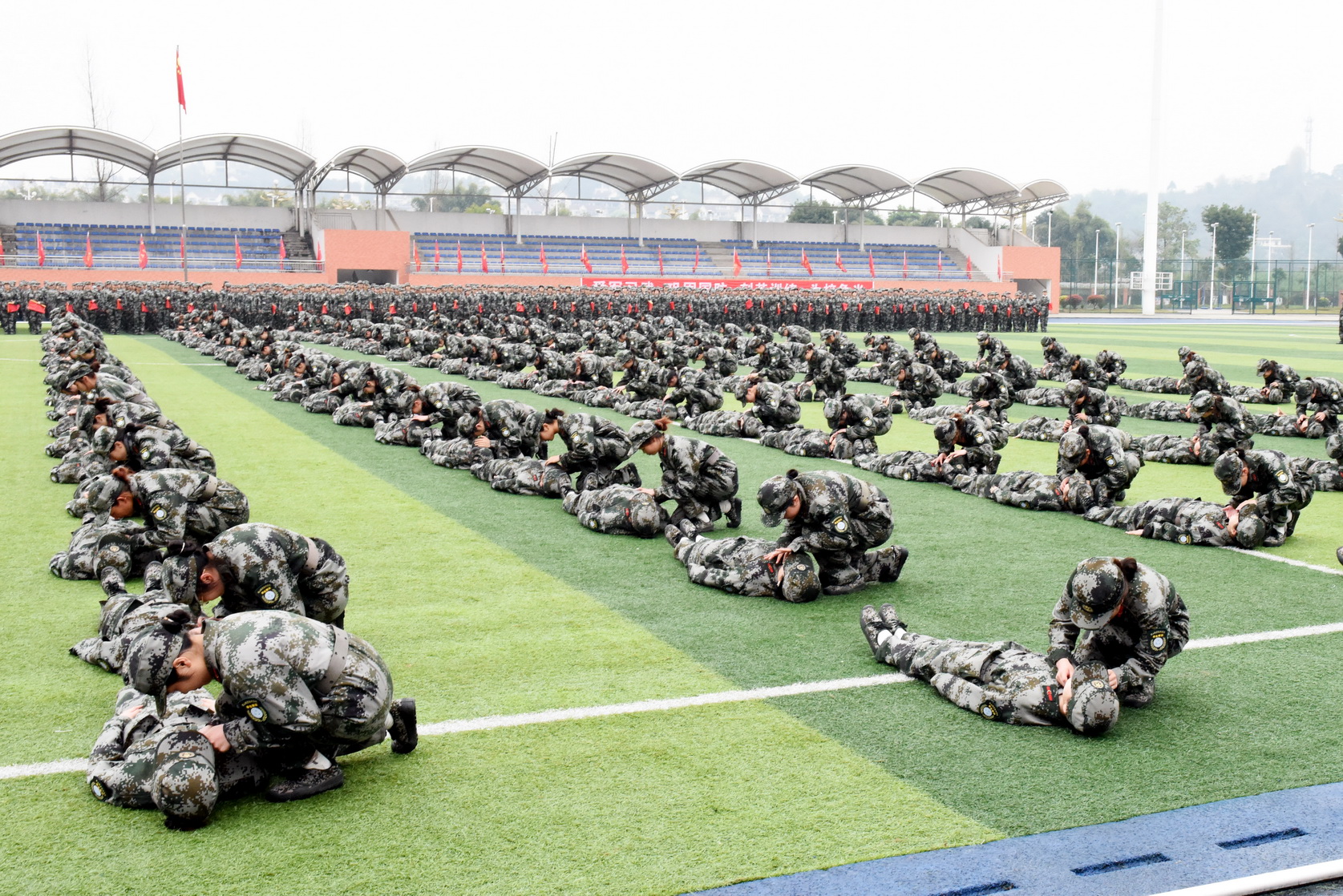 军训成果汇报还进行了分列式、战术、盾牌防暴及处突、擒敌拳、大型花式队列表演。