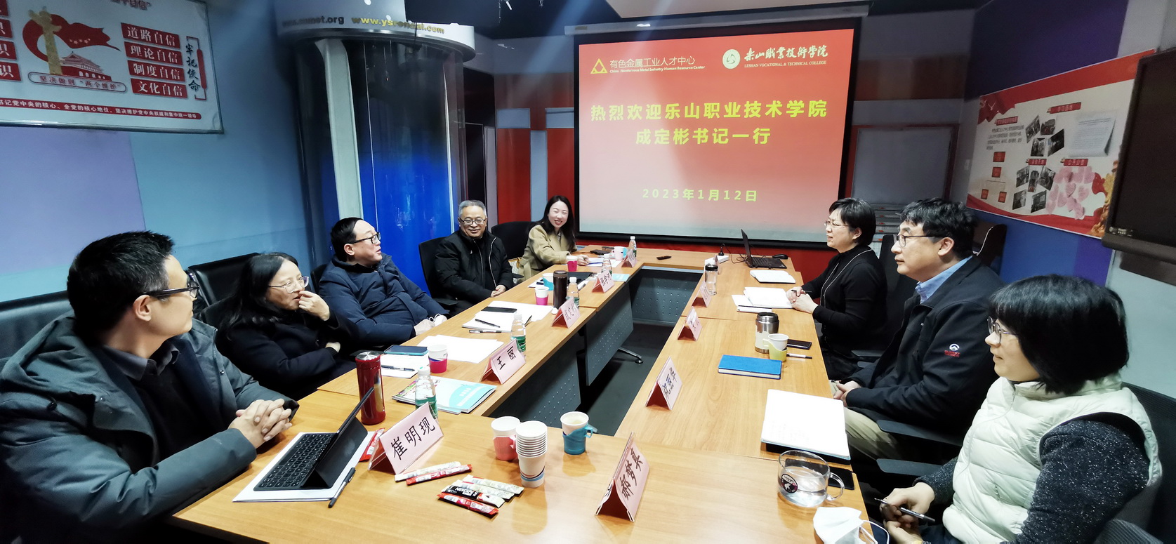 2023年1月12日,学院党委书记成定彬、副院长张学河一行到有色金属工业人才中心开展调研。