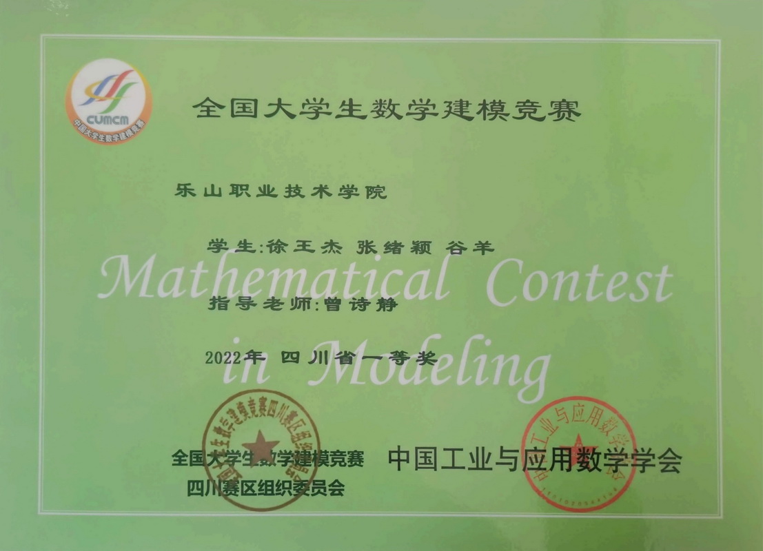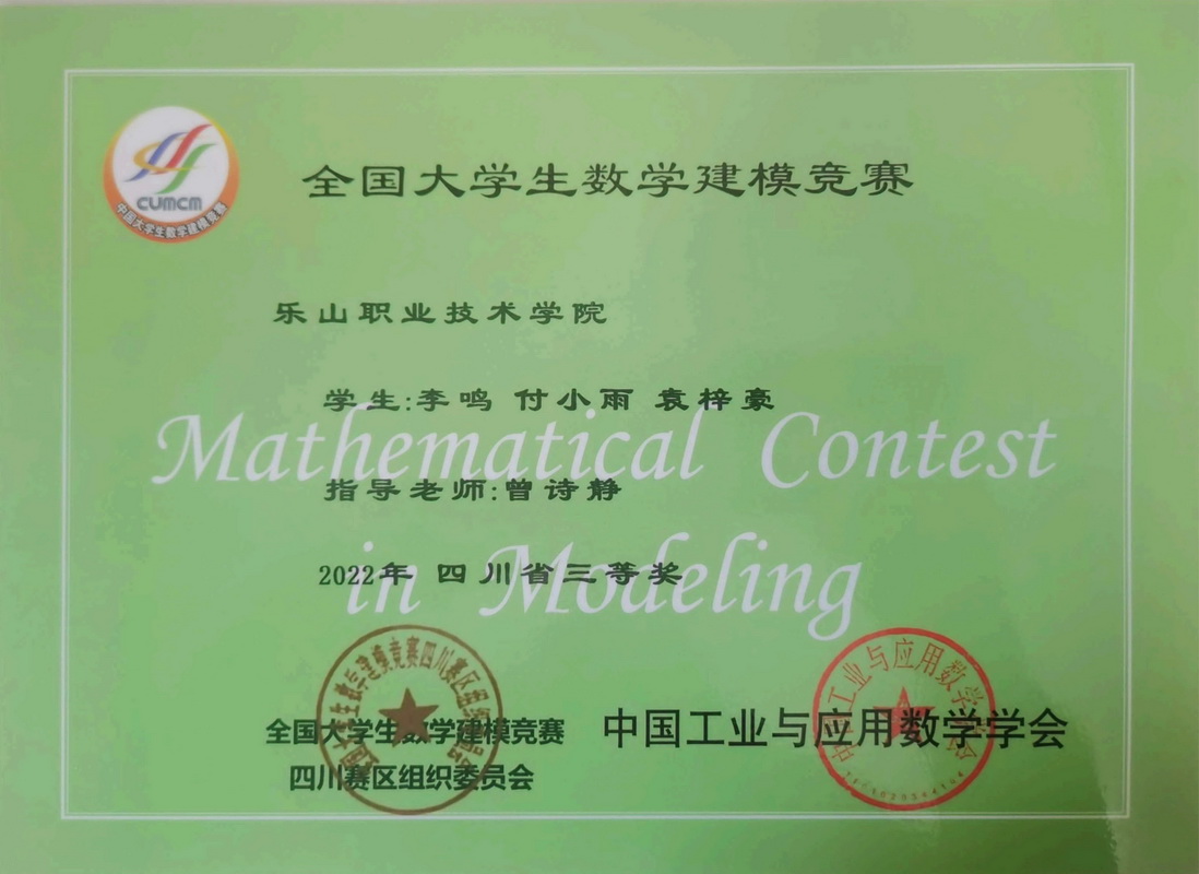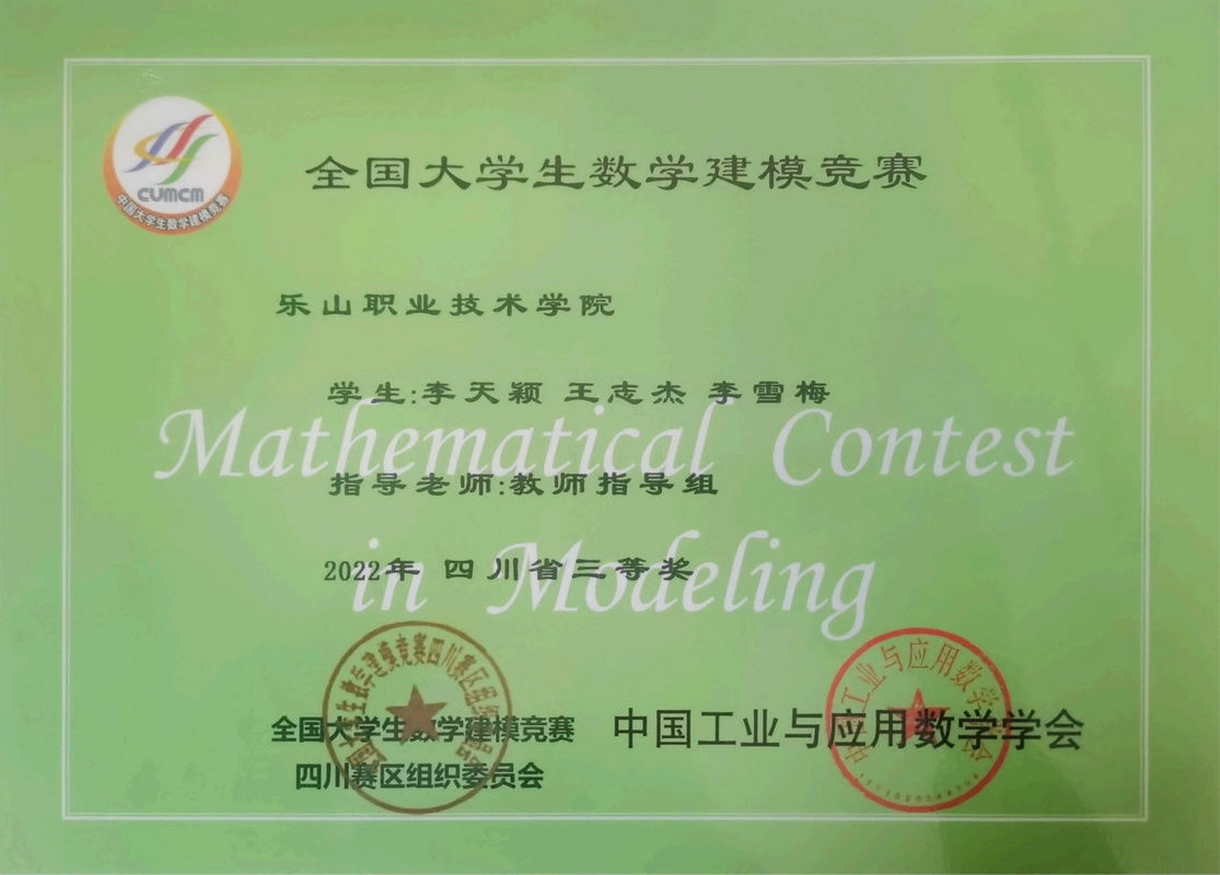 全国大学生数学建模竞赛创办于1992年,是首批列入“高校学科竞赛排行榜”的19项竞赛之一,也是教育部认可的56项高含金量的大学生学科竞赛之一。近日,2022年全国大学生数学建模获奖名单公布,我院学生取得历史性佳绩。在指导组教师们精心指导下,参赛学生们团结合作、努力备赛,所有参赛队伍全部获奖,共获全国二等奖一项,四川省一等奖两项、二等奖一项、三等奖两项。