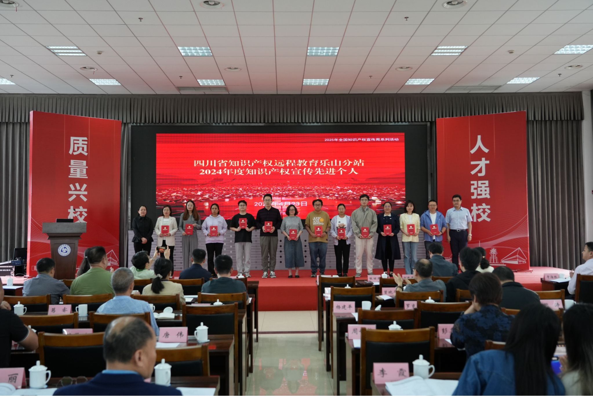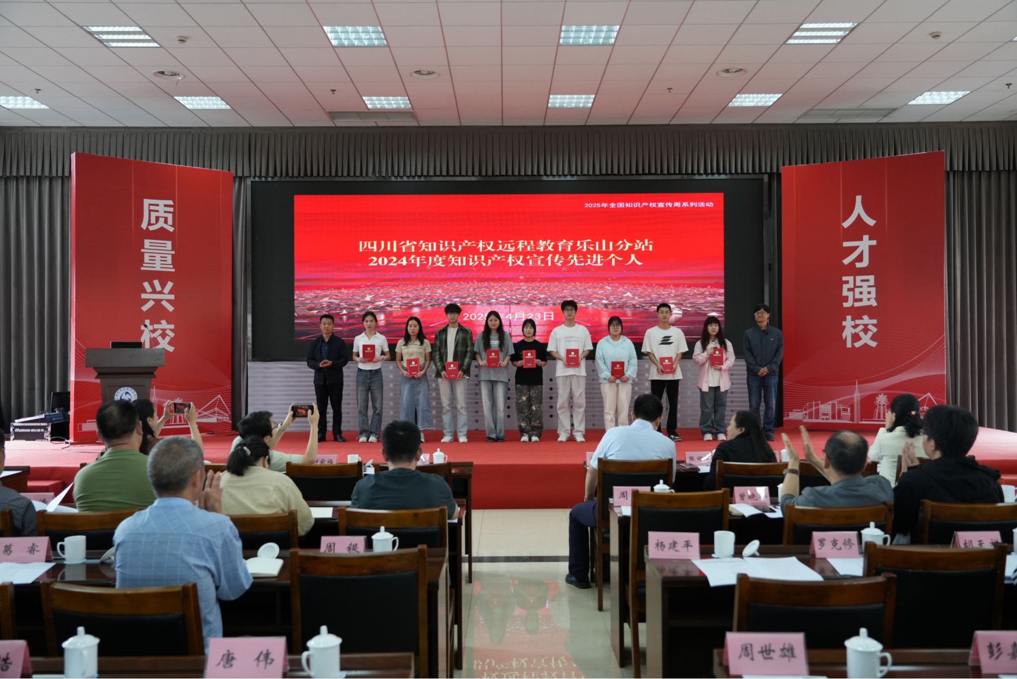 会上还举行了四川省知识产权远程教育乐山分站2024年度知识产权宣传先进个人颁奖仪式,对在知识产权宣传工作中表现突出的教师和学生代表进行表扬。