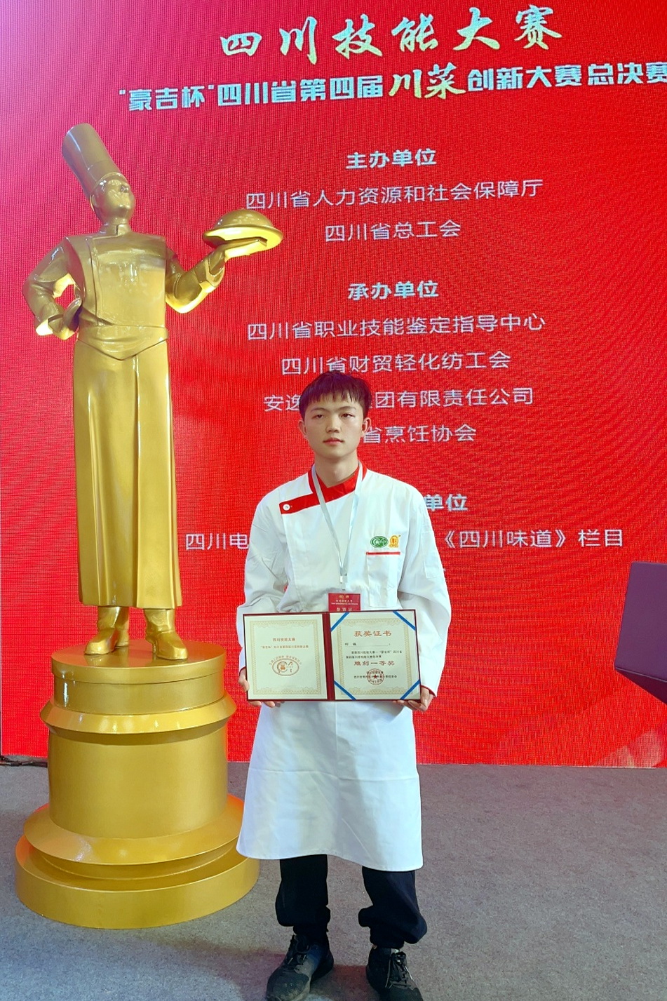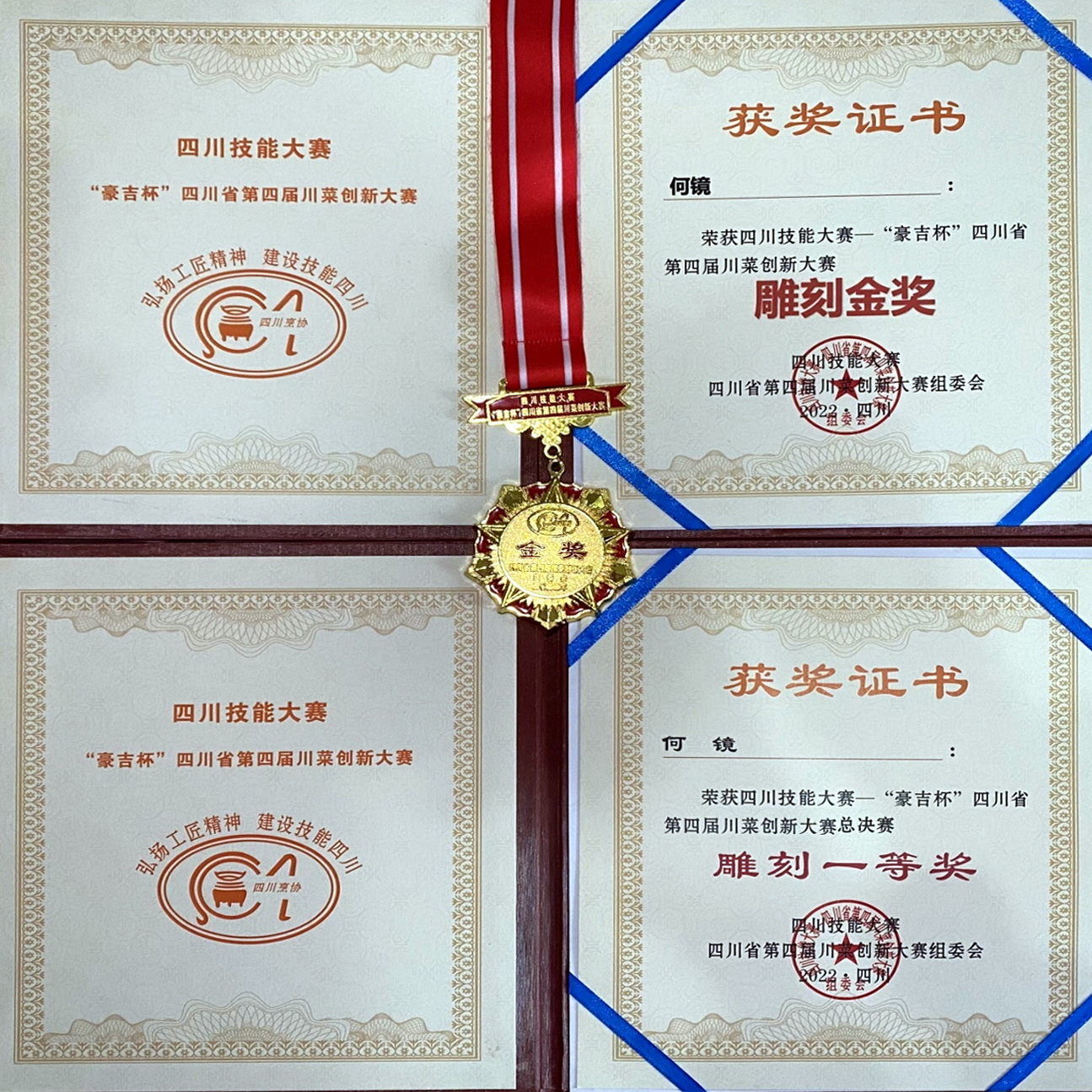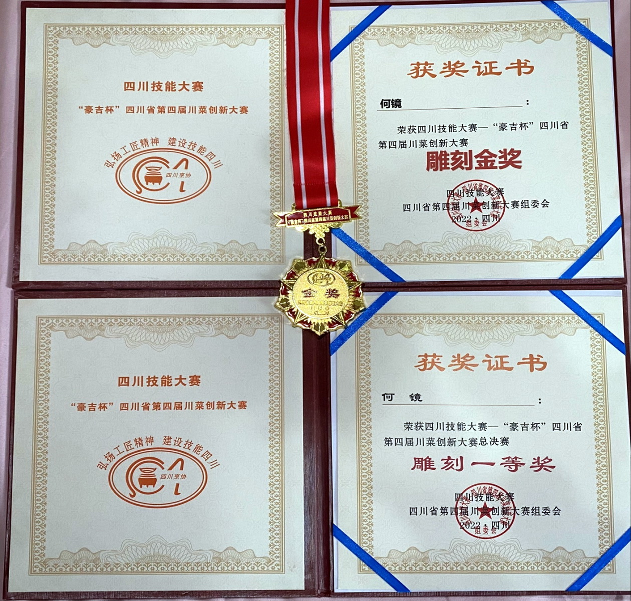 2022年10月28日,四川省一类赛事“四川技能大赛——‘豪吉杯’四川省第四届川菜创新大赛”总决赛在成都举行,BV伟德官方网站普专烹饪工艺与营养专业2021级学生何镜斩获食品雕刻赛项省级“一等奖”。
