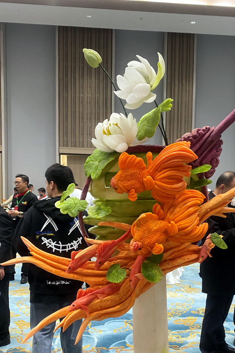 本次大赛由四川省人力资源和社会保障厅、四川省总工会联合主办,总决赛由四川省职业技能鉴定指导中心、四川省财贸轻化纺工会、安逸酒店集团有限责任公司、四川省烹饪协会联合承办。经过第一阶段南充、泸州、自贡、成都四个赛区的比拼,共有168名选手、20个团体队成功晋级总决赛,BV伟德官方网站何镜同学一路过关斩将,在预选赛中荣获泸州赛区“雕刻金奖”并晋级总决赛。