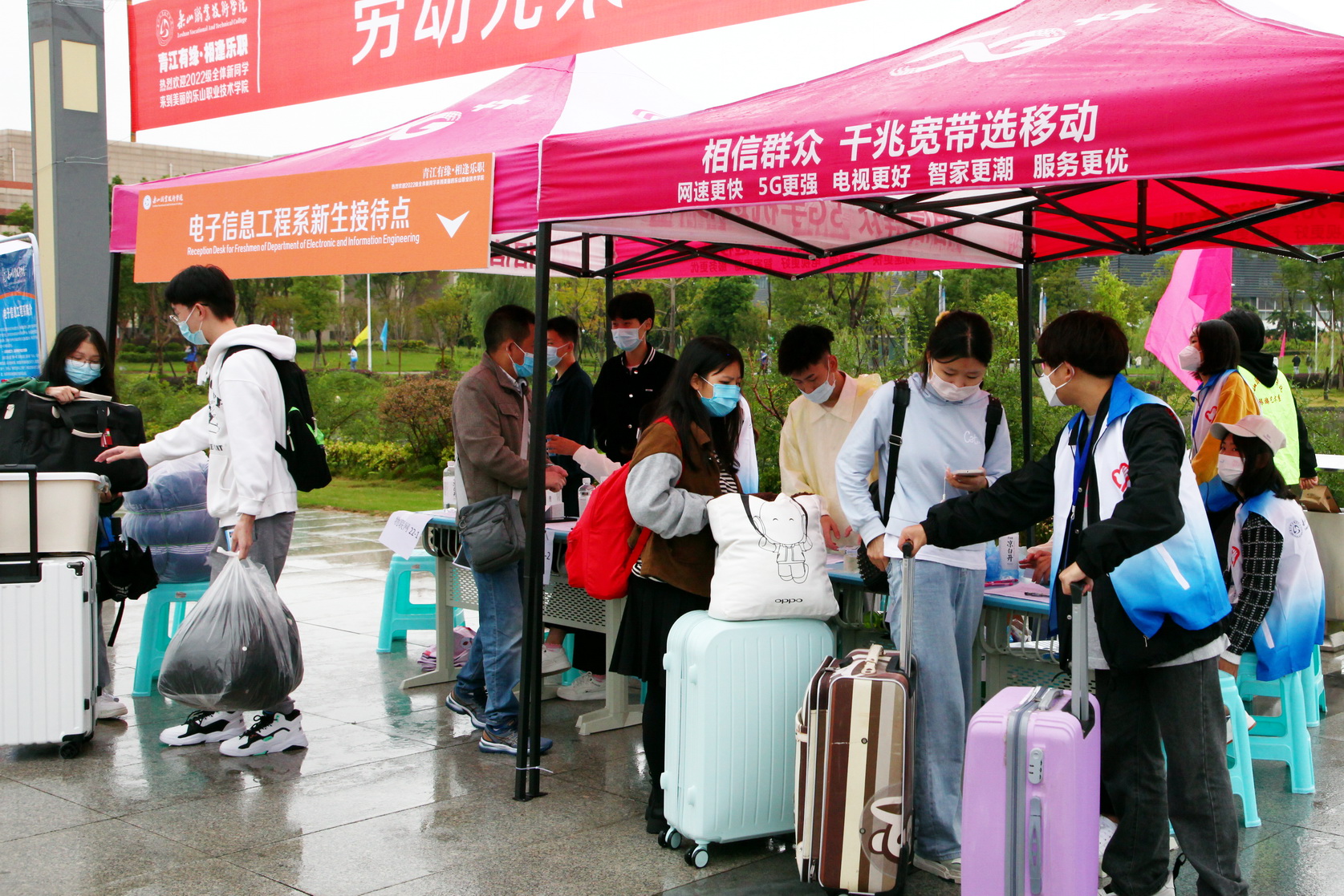为落实疫情防控要求,切实保障学生身体健康,学院2022年秋季学期老生返校、新生报到日期延迟至10月8日和9日。10月9日,4100余名新生怀着期盼、激动的心情,从各地汇聚到青衣江畔的BV伟德官方网站,他们推着拉杆箱、背着行李包,经过校门外长长的疫情防控通道后,迫不及待地跨进校园,开启人生新旅程,书写人生新篇章。