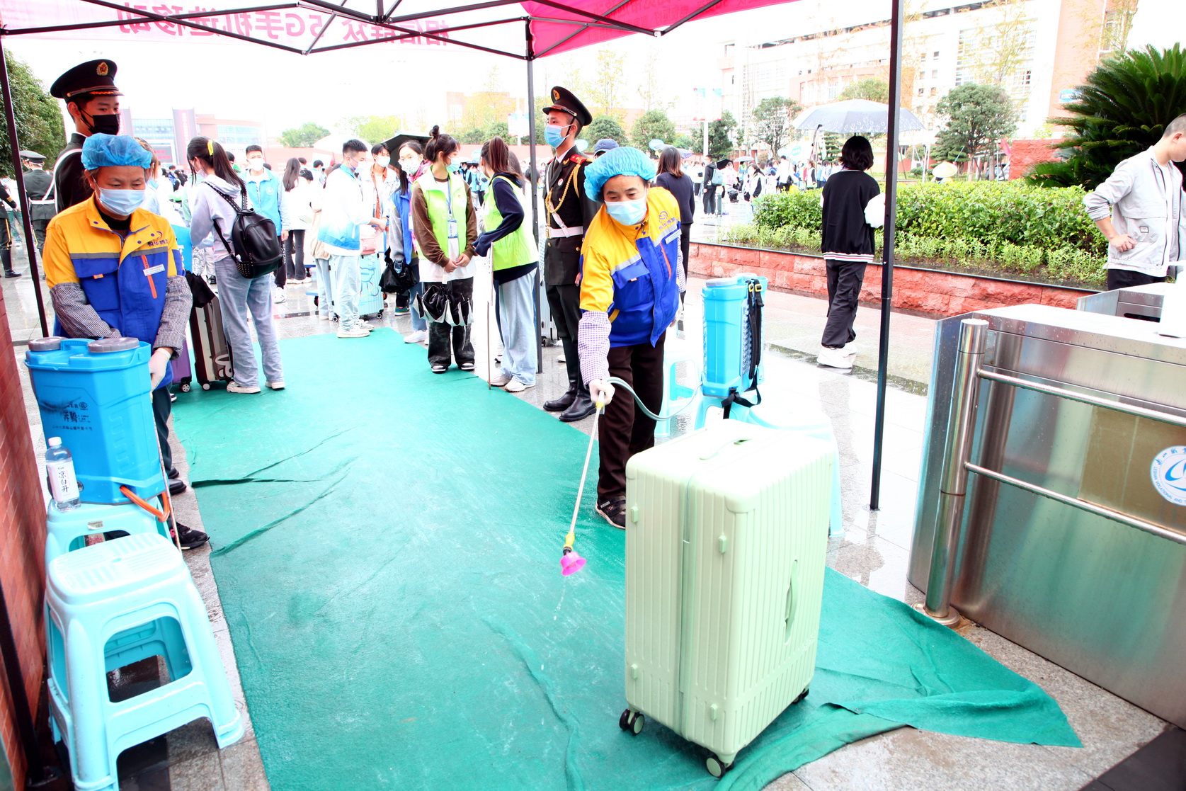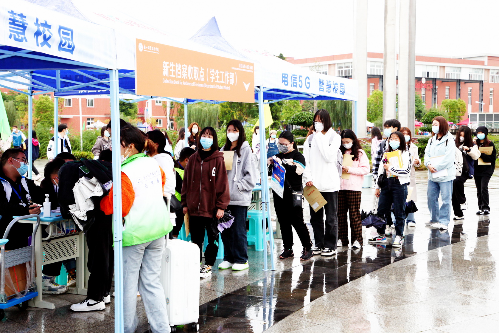 为方便学生到校及行李搬运,学院在高铁站、旅游车站、联运车站、中心站设立了接待处,开通了新生入学专用大巴,接送新生和家长。新生经过行李消毒、安全码查验、身份核实、体温检测合格后方能入校。各系部的学生志愿者在大门入口处接过新生们手中沉重的行李,送到学院在校门内设立的行李寄存处,学院安排的摆渡车再将新生的行李送到各寝室楼下。志愿者带领新同学办理入学手续、领取一卡通、导航寝室、解答新同学的疑问,给新同学带去温暖和关怀。