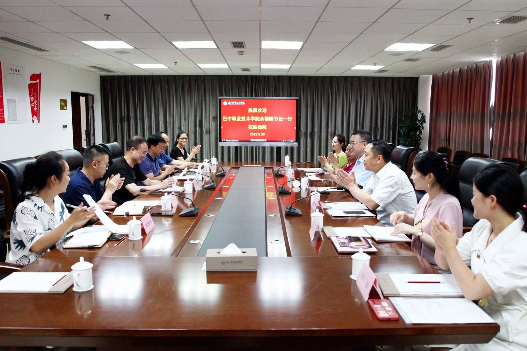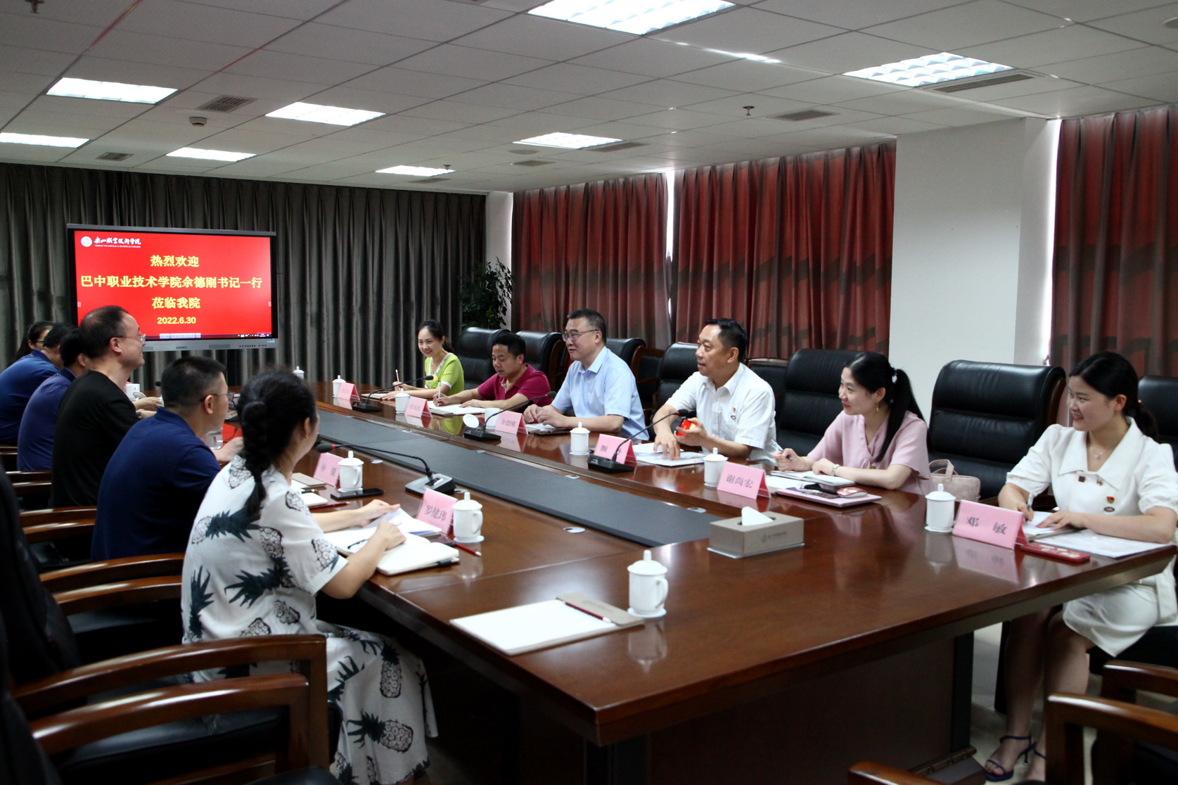 2022年6月30日上午,巴中职业技术学院党委书记、四川省人民政府督导专员余德刚,副院长颜丹一行6人莅临我院考察交流。