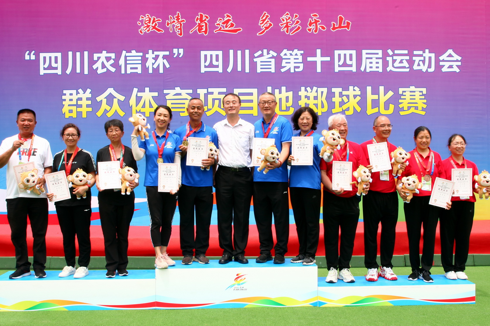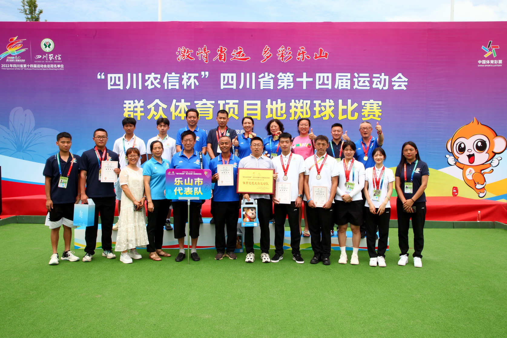 6月25日-27日,四川省第十四届运动会群众体育项目地掷球比赛在乐职院地掷球场地举行,这是继2021年首次列入全运会后今年首次列入省运会的项目,来自成都、攀枝花、泸州等省内各市州的14支代表队共192名运动员参赛。由乐职院师生运动员和乐山嘉阳煤矿、五通桥区、乐山太白路小学部分地掷球运动员组建的乐山代表队获得7金4银1铜的优异成绩。