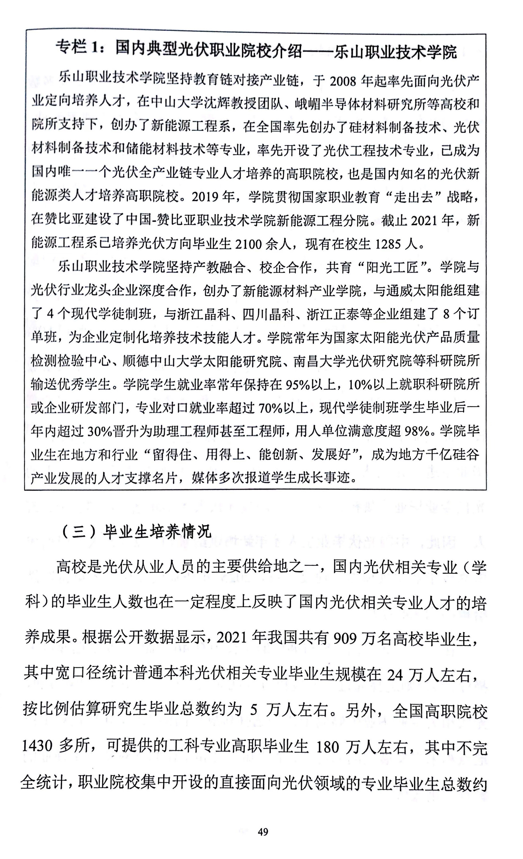 学院参与了《中国光伏产业从业人员白皮书》的编制工作,学院产教融合共育阳光工匠案例入选白皮书职业院校专栏。