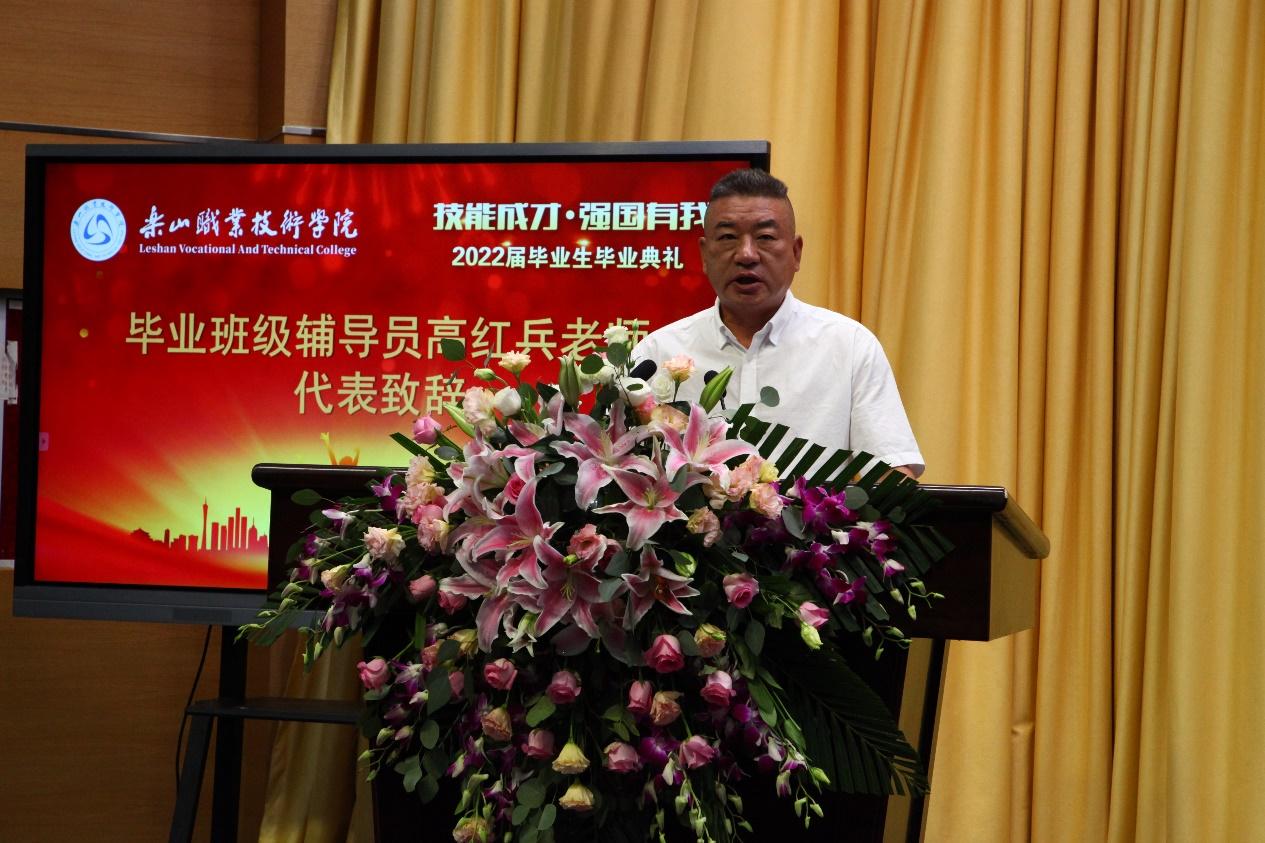 随后,辅导员代表高红兵老师在临别之际对2022届毕业生殷切嘱托:“希望你们爱党爱国爱社会主义,希望你们爱家爱学习爱劳动,还希望你们爱健康爱自然爱人生。志存高远、脚踏实地,在奋斗中创造精彩人生,为祖国和人民贡献青春和力量。”