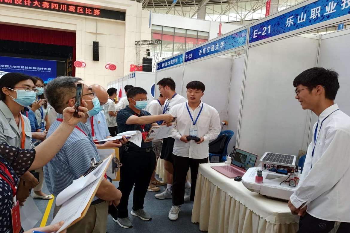 机电工程系师生全力备赛,主题解析、社会调研、头脑风暴、产品构想、产品设计……每个环节都充满挑战,收获满满。经过8个多月的辛苦付出,团队设计制作的《净化者》《上岸清道夫》和《水面垃圾收集者》等三个作品,经过现场作品展示、路演、PPT答辩和专家评审,在与来自四川大学、西南交通大学等多所本科院校和四川工程职业技术学院等多所高职院校选手的激烈比拼中,斩获二等奖1项和三等奖2项。