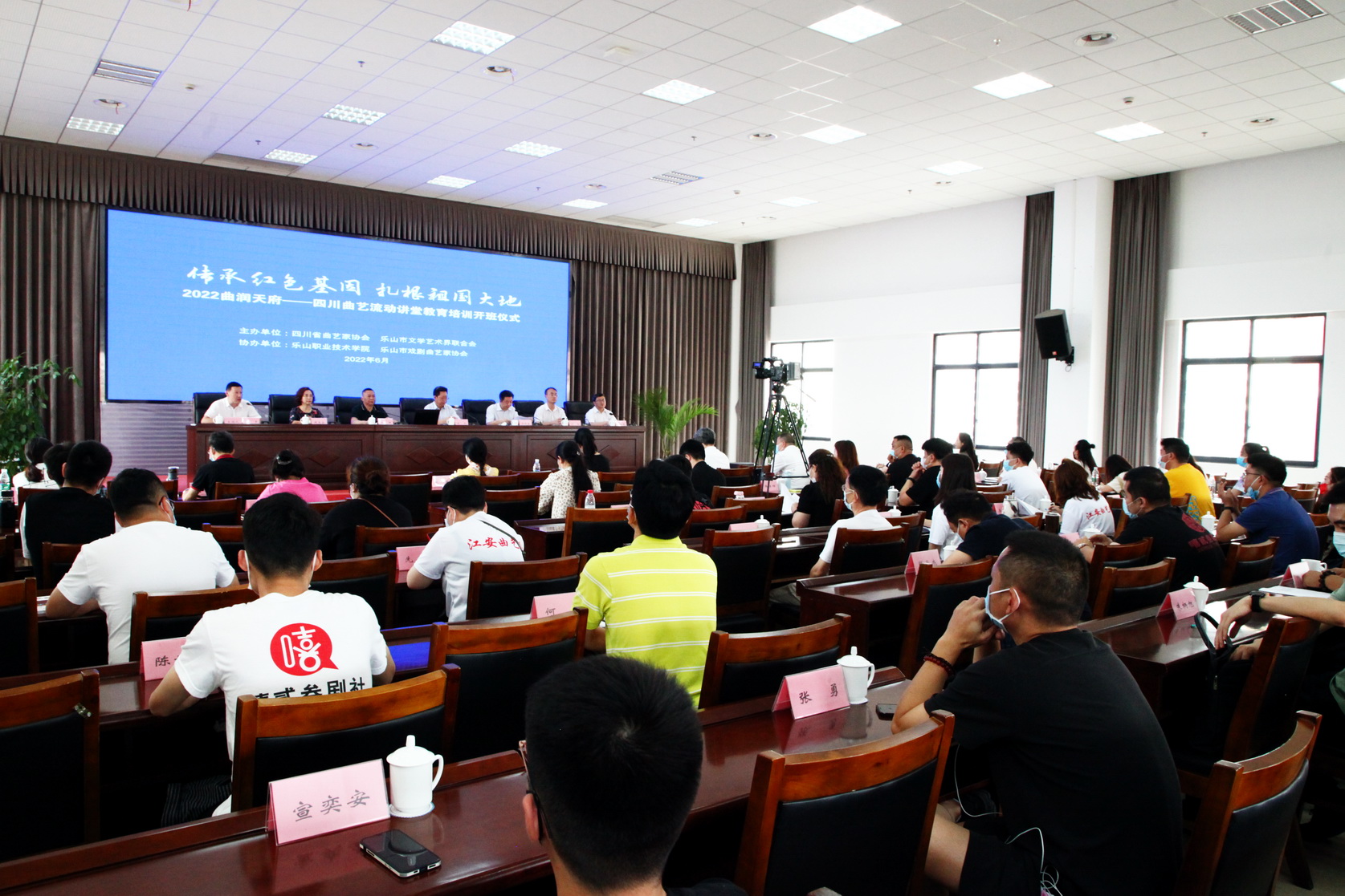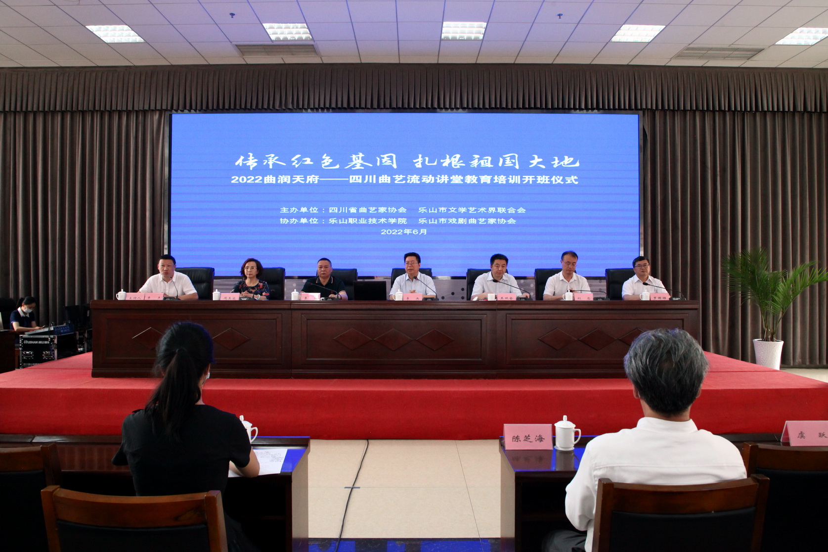 6月13日,由四川省曲艺家协会、乐山市文联主办的“传承红色基因 扎根祖国大地”2022曲润天府——四川曲艺流动讲堂教育培训,在BV伟德官方网站开班。省文联党组副书记、副主席李兵,市委常委、宣传部部长王双全,省曲艺家协会副主席、巴中市政协副主席秦渊,学院院长刘忠、党委副书记陈芝海出席开班仪式。