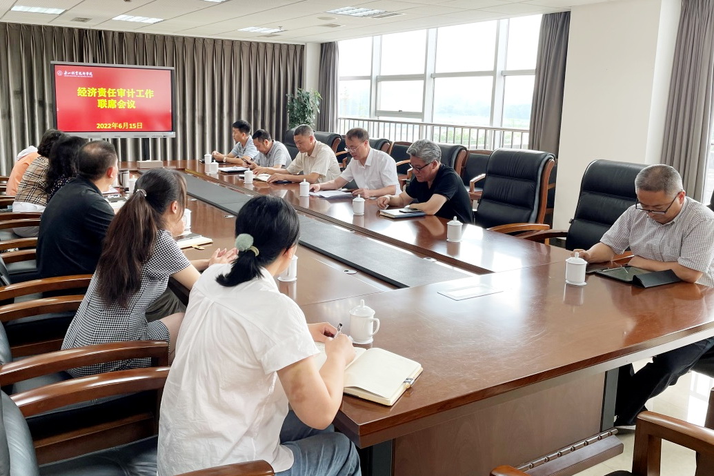 6月15日上午,学院在学术交流中心3003会议室召开经济责任审计工作联席会议,听取关于附属医院原党总支书记、院长曹位平同志离任经济责任审计工作的情况汇报,审议其经济责任审计报告。会议由院长刘忠主持,院级领导和审计处、组织人事部、纪委办、计财处、国资处等部门负责人参加会议。