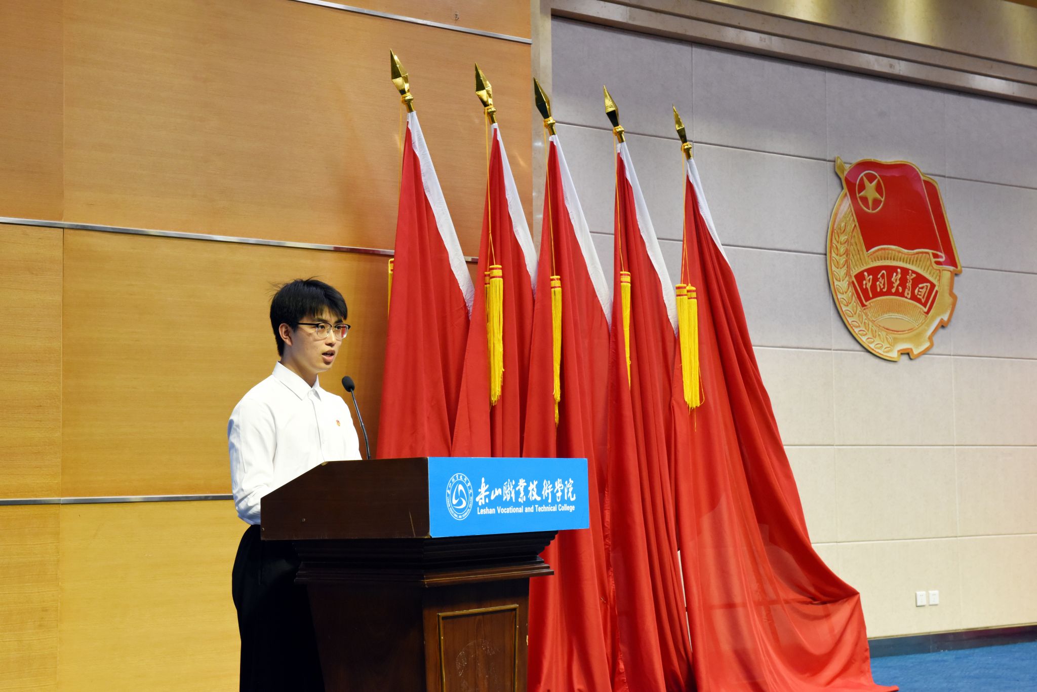 学校党委书记成定彬讲话并上主题团课《不负年华——做挺膺担当的青春奋斗者》。他向获得荣誉的集体和个人表示祝贺,并勉励全校青年弘扬五四精神,坚定理想信念,练就过硬本领。