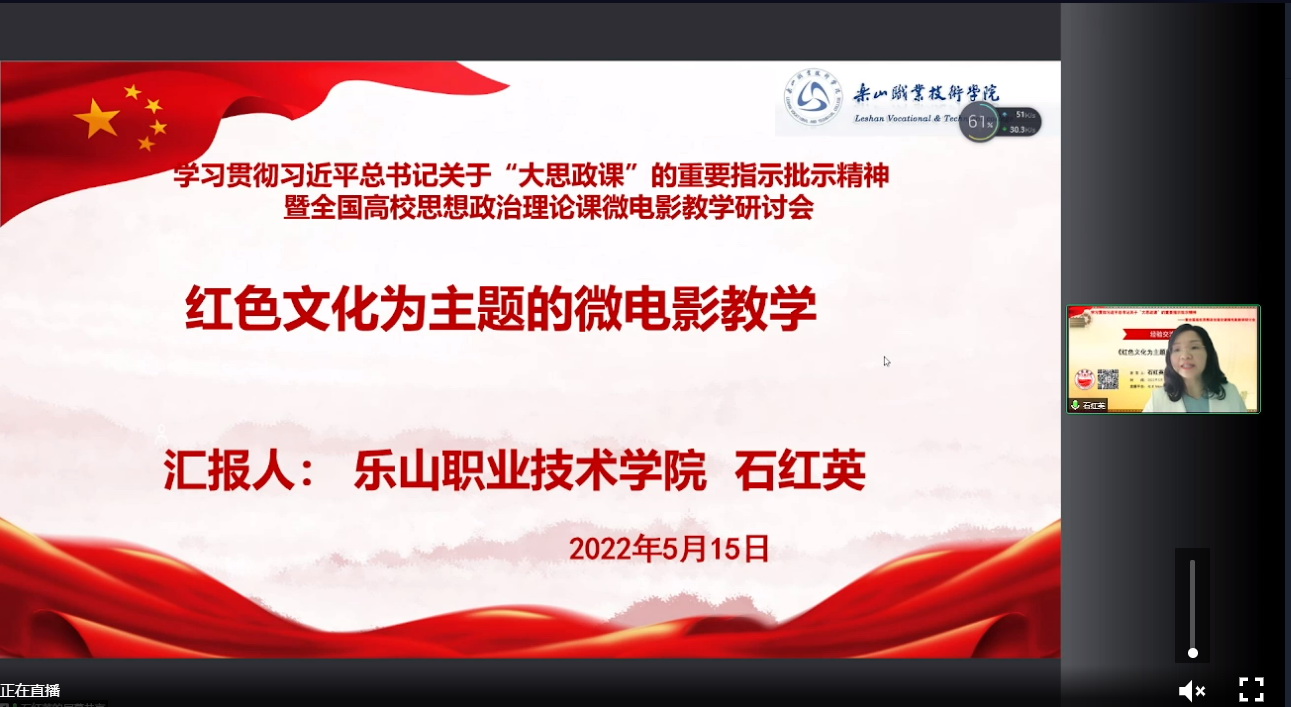 2022年5月15日,由河北大学马克思主义学院、北京高校思想政治理论课高精尖创新中心、北京高校中国特色社会主义理论研究协同创新中心(中国政法大学)主办,河北大学期刊社提供学术支持、超星集团河北分公司提供技术支持的“学习贯彻习近平总书记关于‘大思政课’重要指示批示精神暨全国高校思想政治理论课微电影教学研讨会”在河北大学以线上形式举办。中国人民大学马克思主义学院副院长宋学勤在开幕式上传达了习近平总书记在中国人民大学考察时的重要讲话精神,介绍了北京高校思想政治理论课高精尖创新中心的主要工作。这次会议受到学界广泛关注,200余所高校9000余人通过线上形式参会。本次会议共征集到全国教师、博士、硕士论文和经验材料78篇,选取了其中15位作者参加经验交流和学术研讨活动。我院马克思主义学院石红英老师以文入会并作了题为“红色文化为主题的微电影教学”的交流发言。