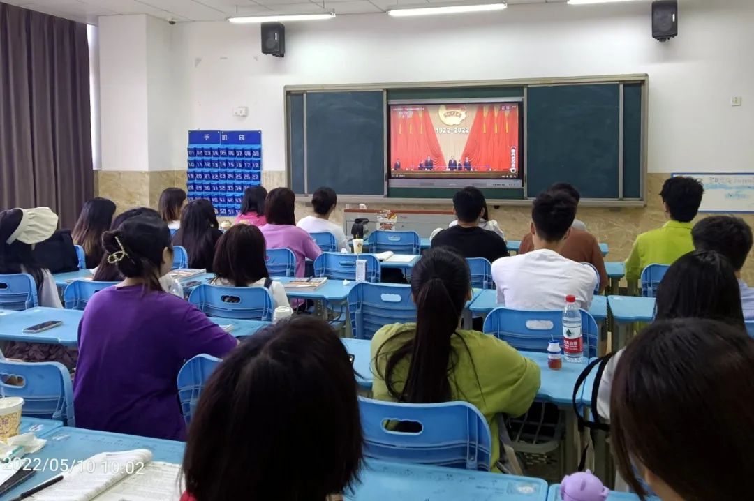 2022年5月10日上午10点,庆祝中国共产主义青年团成立100周年大会在北京人民大会堂隆重举行。中共中央总书记、国家主席、中央军委主席习近平出席大会并发表重要讲话。BV伟德官方网站组织全院学生,通过集中收看和分散收看的方式观看了直播节目,引起了学生热烈反响。