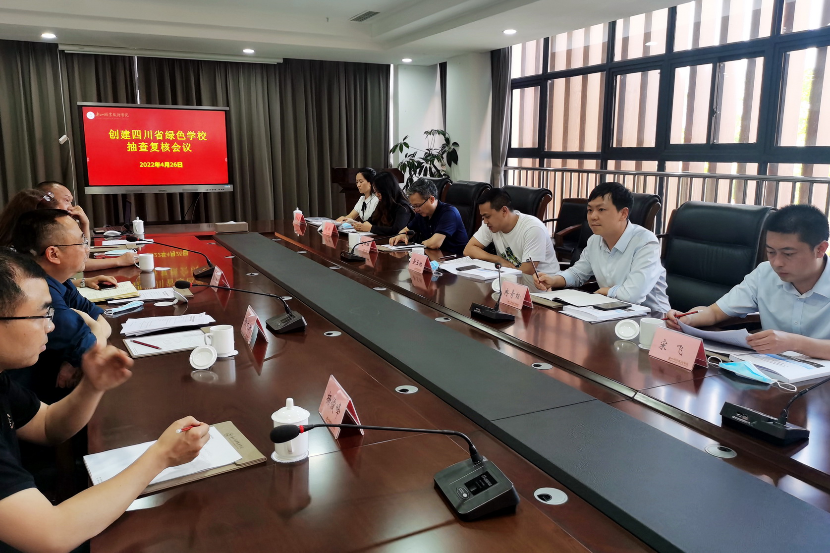 4月26日下午,省发改委环资处四级调研员冉青松、省教育厅后产中心副科长宋飞、黄玉林一行莅临我院,抽查复核“四川省绿色学校”创建工作。市教育局副局长罗承志、市发改委调研员赵仁辉、市教育局体卫艺劳科科长胡莉、市发展改革委环资科科长胡榆,学院副院长陈元进,以及学院后勤处处长张舸、副处长杨俊峰等参加会议并陪同检查。