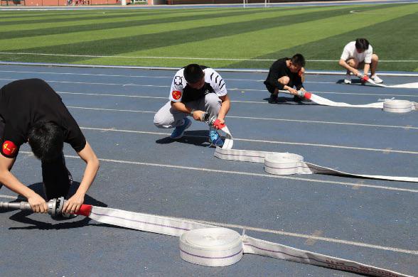 本次消防运动会各系(部)参赛队员共计120名,由12支队伍组成。设火场逃生、油盆灭火、水枪连接、运水接力4个比赛项目及应急救护操作展示。培养学生在应对火灾时如何正确使用消防器材和逃生自救、互救能力。比赛场上,运动员竞争激烈,各队伍准备充分,配合默契。比赛结束后,由红十字会志愿者进行应急救护操作展示。