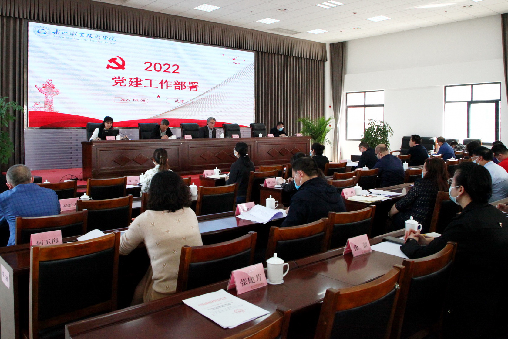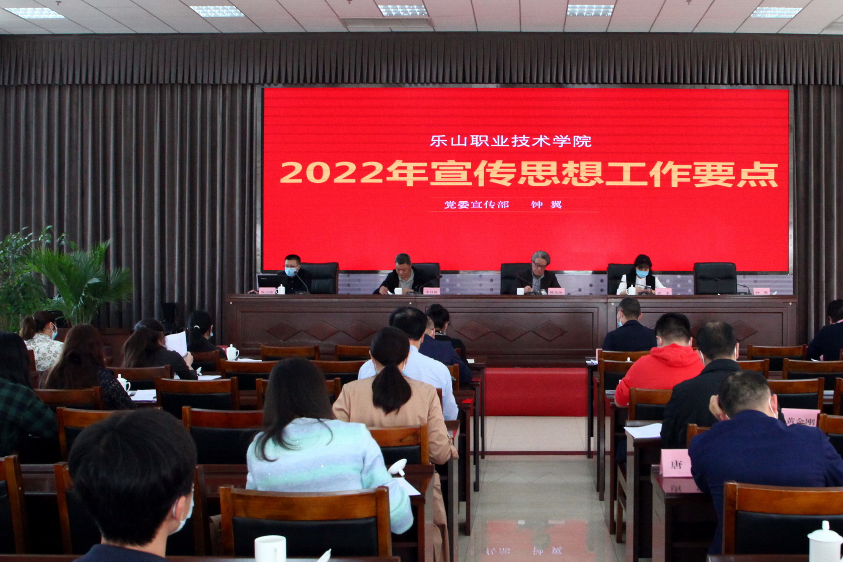 党委组织人事部部长武术和宣传部部长钟翼分别就2022年党建工作和宣传思想工作作了部署。药学系、旅游系、机电工程系、马克思主义学院党总支就2021年各自的党建工作和宣传思想工作作了交流发言。