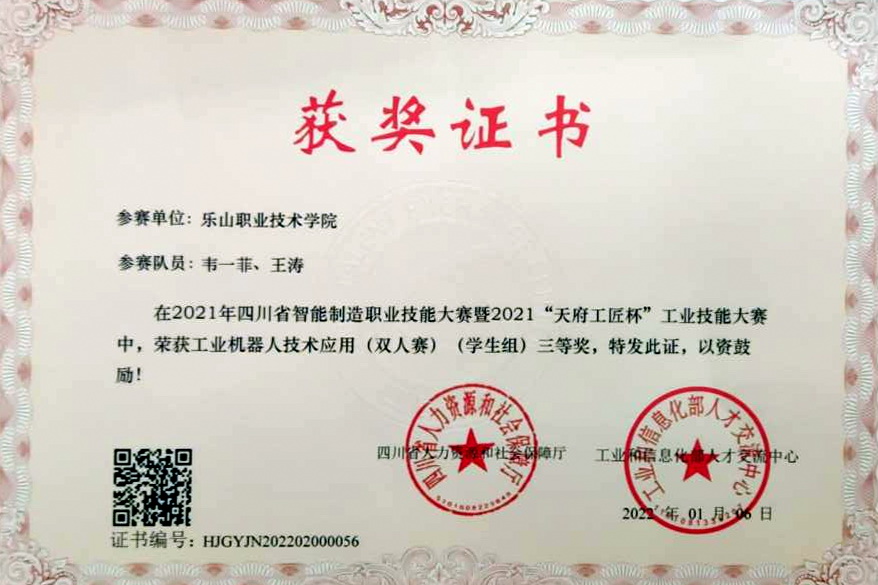 面对成都、绵阳、德阳等地市的强劲对手,参赛师生积极准备、刻苦训练,依托机电工程系和省级技能大师工作室的支持与帮助,凭借良好的心理素质、过硬的专业技能水平,取得了良好的成绩。其中:由方鹏、陈强老师指导,普专机械20-1班卢光兵参赛的数控铣工赛项夺得第3名,获省二等奖并直接晋级技师;由赵鑫、杨爽老师指导,普专机器人21-2班韦一菲参赛的工业机器人技术应用赛项夺得第8名,获省三等奖;由方鹏、陈强老师指导,普专机械20-1班胡天晴参赛的数控车工赛项夺得了第9名。
