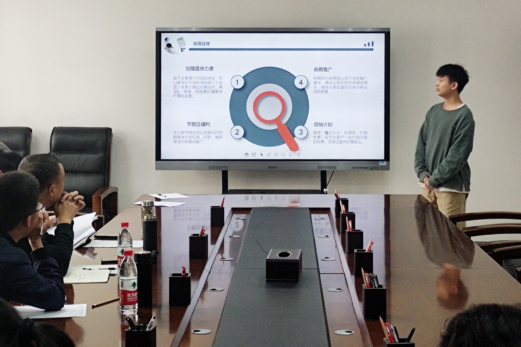 通过广泛宣传、项目申报、系部大学生创新创业俱乐部选送、学院大学生创新创业俱乐部集体辅导、审核,本次评审会,学院从15个申报项目中遴选了9个项目参加此次评审。参与评审的项目包含了农特产品、教育培训、民俗工艺、互联网+等。评审会上,各项目负责人分别对自己的项目进行了路演,讲述了自己的创业发展历程及运营情况,展示了产品及成果,对评审专家对项目成立时间、市场需求、营业收入、成本利润、产品专利等提问进行了答辩。评审过程中,专家对一些创业项目思路不清、管理不济、营运风险等情况予以指导,并希望项目多完善管理,改进市场拓展思路,减少创业风险。