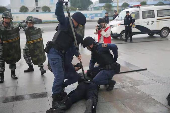 下午4时整,演练总指挥、学院副院长陈元进宣布BV伟德官方网站2021年反恐防暴演练开始。