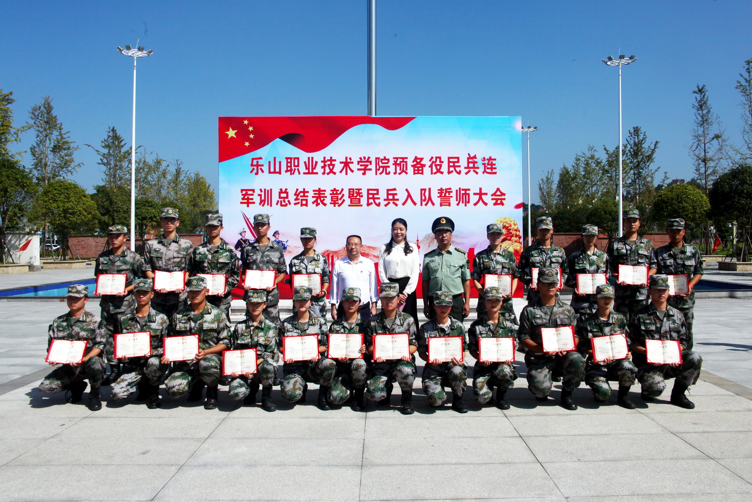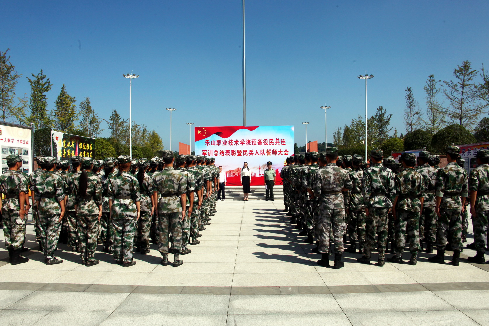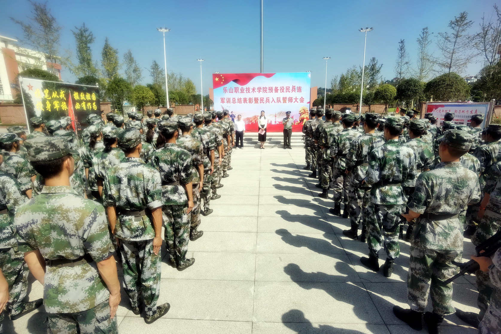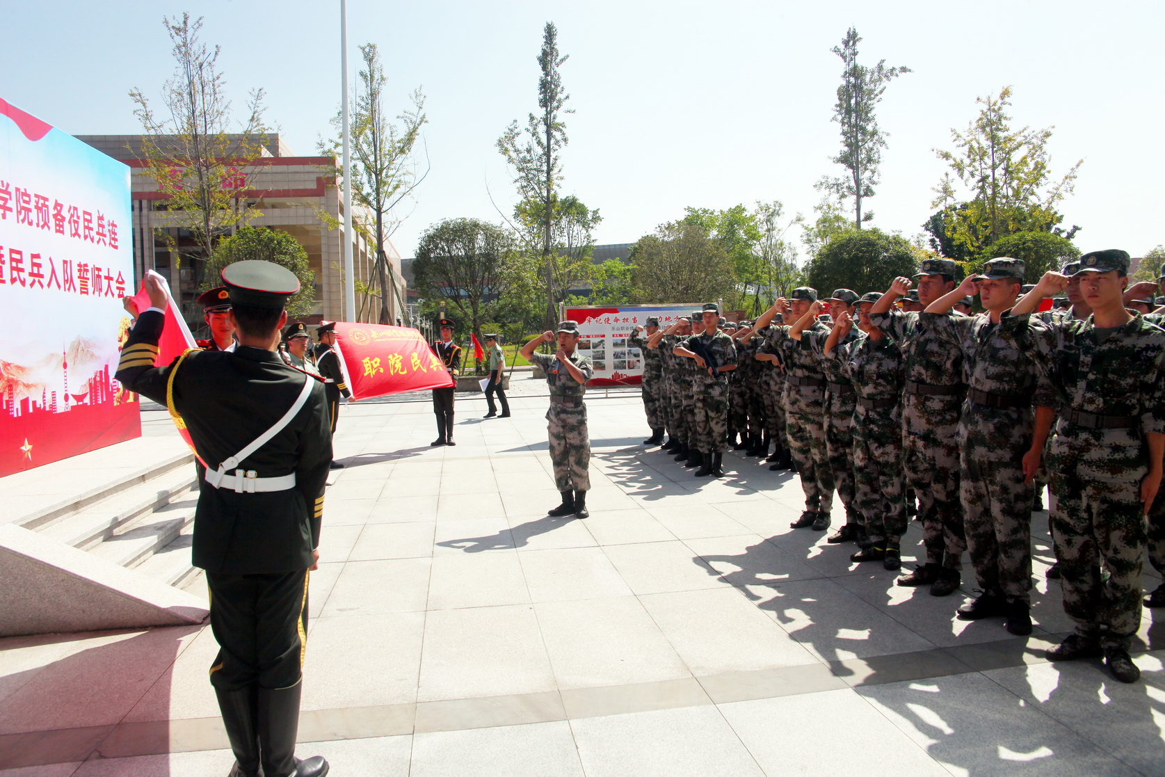 9月29日,BV伟德官方网站预备役民兵军训总结表彰会暨民兵入队誓师大会在学院明德广场举行,学院党委书记易群、副院长陈元进、武装部全体工作人员和140名预备役民兵队员参加了大会。