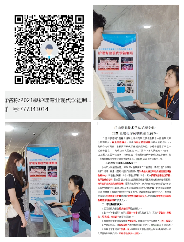 为了做好此次选拔工作,院校、系部各部门相互支持、相互配合,做了充分的前期准备。校企共同制定招生宣传展板、拟定招生简章,将招生简章通过新生班辅导员和班级助理提前下发至各个新生班级宣传。建立2021级护理专业现代学徒制班意愿QQ群,对现代学徒制人才培养模式感兴趣的同学建群解惑答疑。选派普专护理专业负责人毛羽佳老师、2021级学徒制班辅导员余飞飞老师、2020级学徒制班宣传委员苏馨玉学姐进行报到现场咨询。