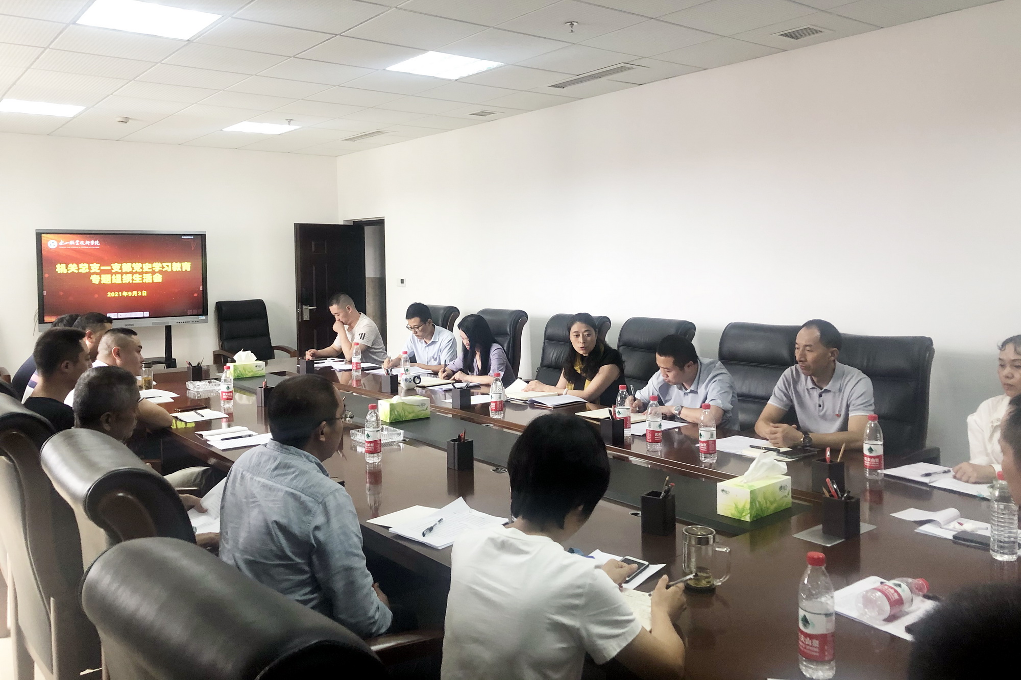 9月3日,学院党委书记易群以普通党员身份参加机关一支部党史学习教育专题组织生活会,与支部党员同志一起,深入学习习近平新时代中国特色社会主义思想和习近平总书记“七一”重要讲话精神,交流研读体会,查摆差距不足,深刻剖析原因,明确整改措施。