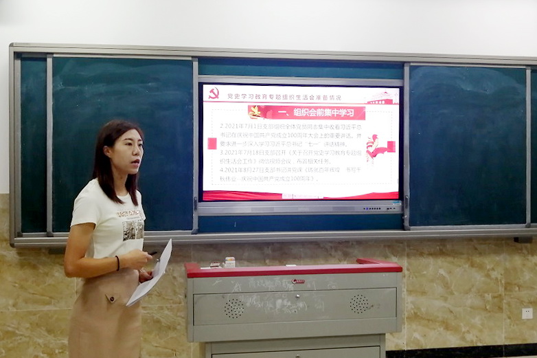 根据学院关于召开党史学习教育专题组织生活会的安排,2021年8月27日下午2点,马克思主义学院党总支教工一支部在教学楼1A409教室召开党史学习教育专题组织生活会。学院党委委员、副院长鲍学东、马院党总支书记郑平出席会议。一支部全体党员同志参加了会议,会议由党支部书记李晓勤主持。