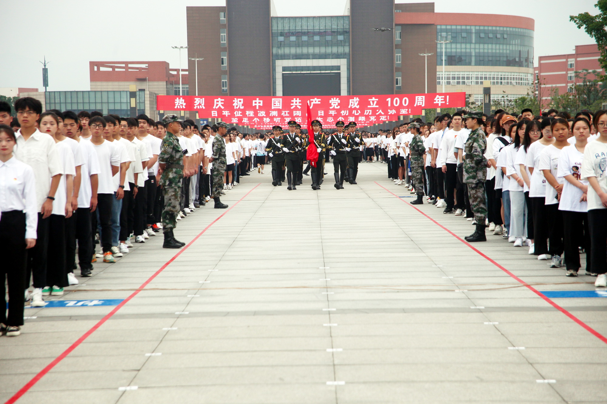 为热烈庆祝中国共产党成立100周年,2021年7月1日上午,BV伟德官方网站隆重举行升国旗仪式。升旗仪式在广场举行,学院院领导、中层干部、各系(部、院)党员教师代表、全体在校学生参加了升旗仪式。
