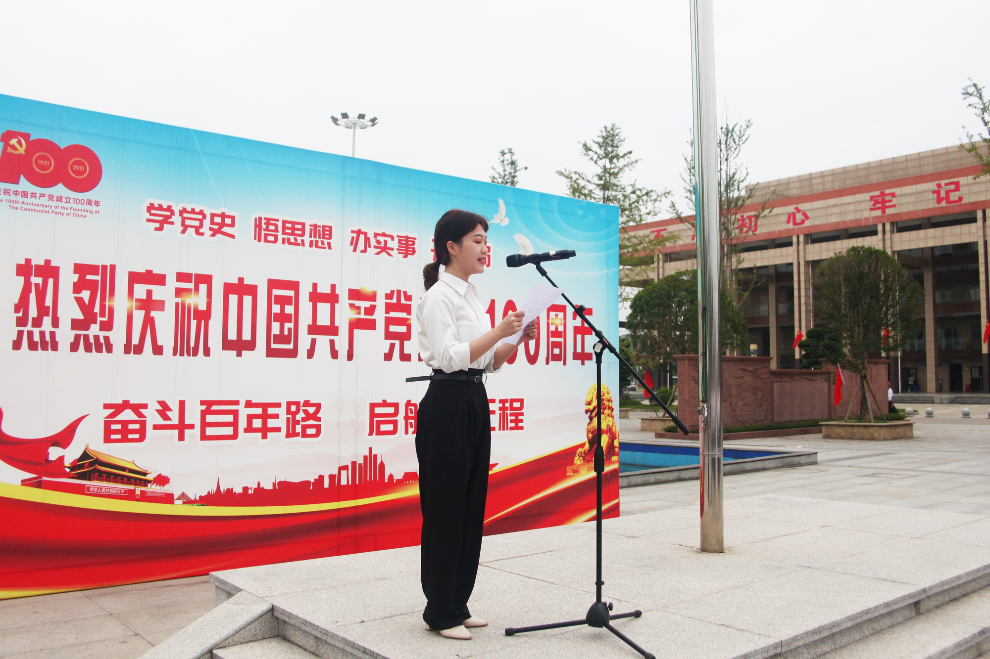 学院团委副书记周芷菁同学代表在校学生,在国旗下发表了主题为《党在我心中》的演讲,表达了对伟大的中国共产党百年华诞的深情祝福。