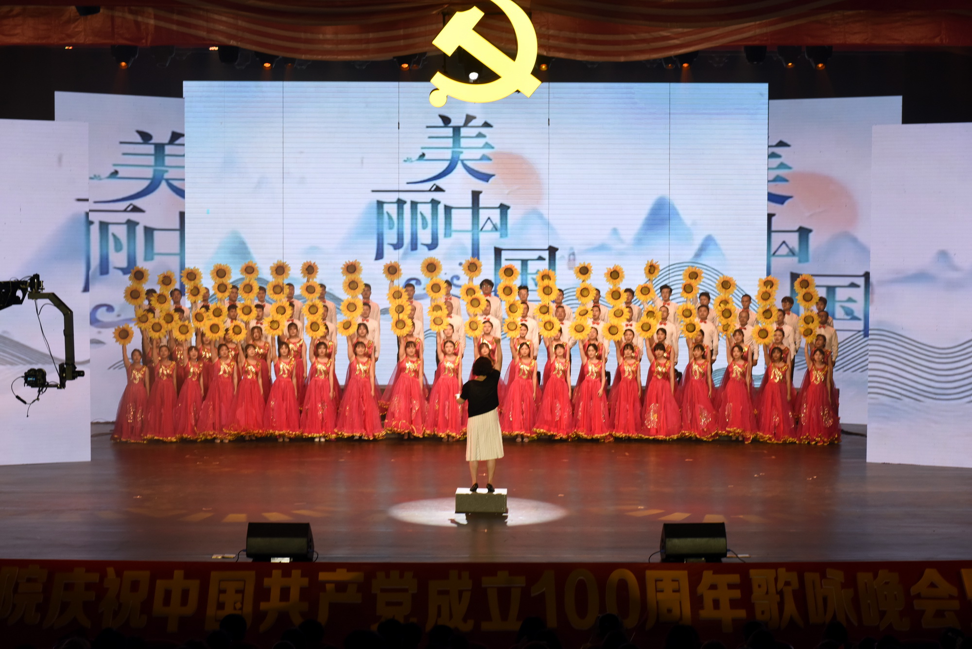 2021年6月30日晚,全院教职工、学生代表1700余人共聚学院礼堂,学院庆祝中国共产党成立100周年歌咏晚会暨“七一”表彰大会隆重举行。