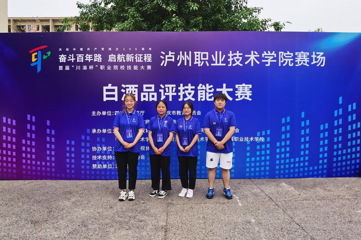 2021年6月27日,由泸州市人民政府和四川省教育厅、重庆市教育委员会共同主办的首届“川渝杯”职业院校白酒品评技能大赛,在泸州职业技术学院顺利举行。经过激烈角逐,由周静贤、高春秀、杨雅杰、李龙雨4位同学组成的BV伟德官方网站代表队获得了团队二等奖的佳绩。