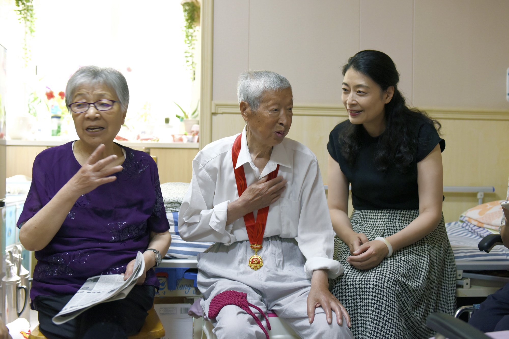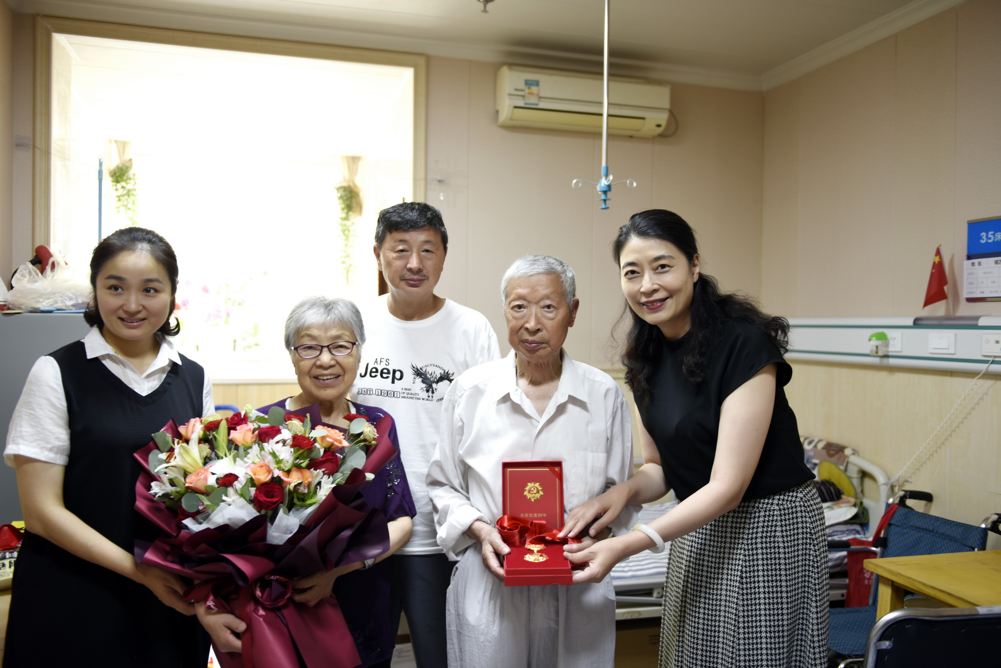 6月28日,学院党委书记易群带领组织人事部、宣传部相关人员专程赴成都龙泉驿,向学院党龄超过50年的老党员杨万祥颁发“光荣在党50年”纪念章并进行慰问,代表学院党委向杨万祥致以亲切问候和崇高敬意。易书记与其促膝交谈,关切询问日常生活和身体健康状况,聆听其英雄传奇故事,致敬人民英雄的光辉岁月。