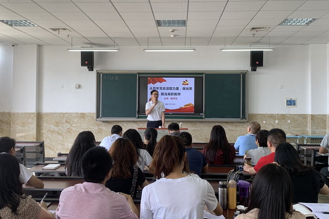 2021年6月10日中午,学院党委委员、副院长鲍学东深入马克思主义学院和基础公共课程部开展党史学习教育专题讲座。本次讲座由马克思主义学院党总支书记郑平主持,两系全体党员共同聆听了本次讲座。