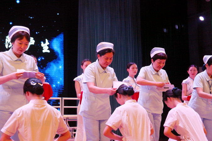 护理系学生授帽仪式在温暖的歌声中进行,市护理学会理事长马智群、副理事长陈冰、何竹等11位护理前辈为护生代表授帽,传递象征着南丁格尔精神的烛火。护生们以干净整洁的着装,严谨自信、优雅庄重、诚信大方的职业风采赢得了台下观众的阵阵掌声,在铿锵有力的誓言中,表达了终身献身护理事业的决心,传递着护理事业薪火相传、为人民健康服务的信念和担当。
