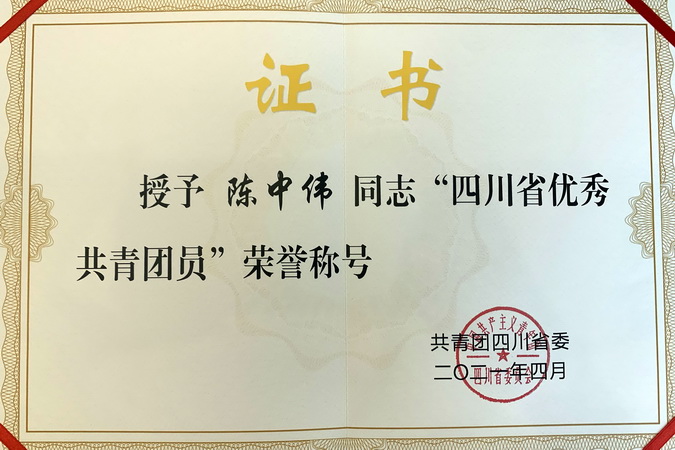 BV伟德官方网站药学系18级药学专业学生陈中伟被授予“四川省优秀共青团员”荣誉称号。